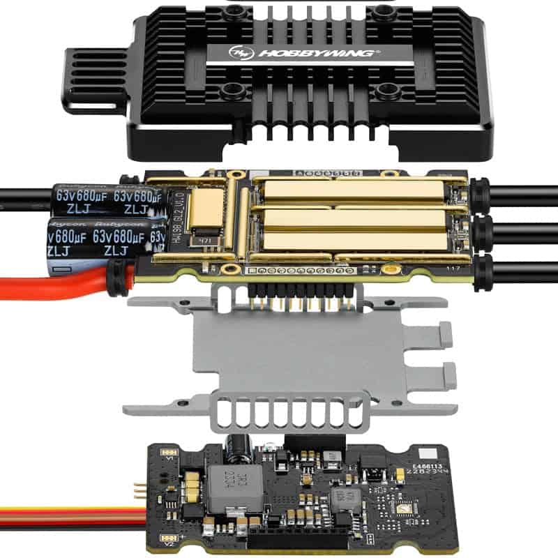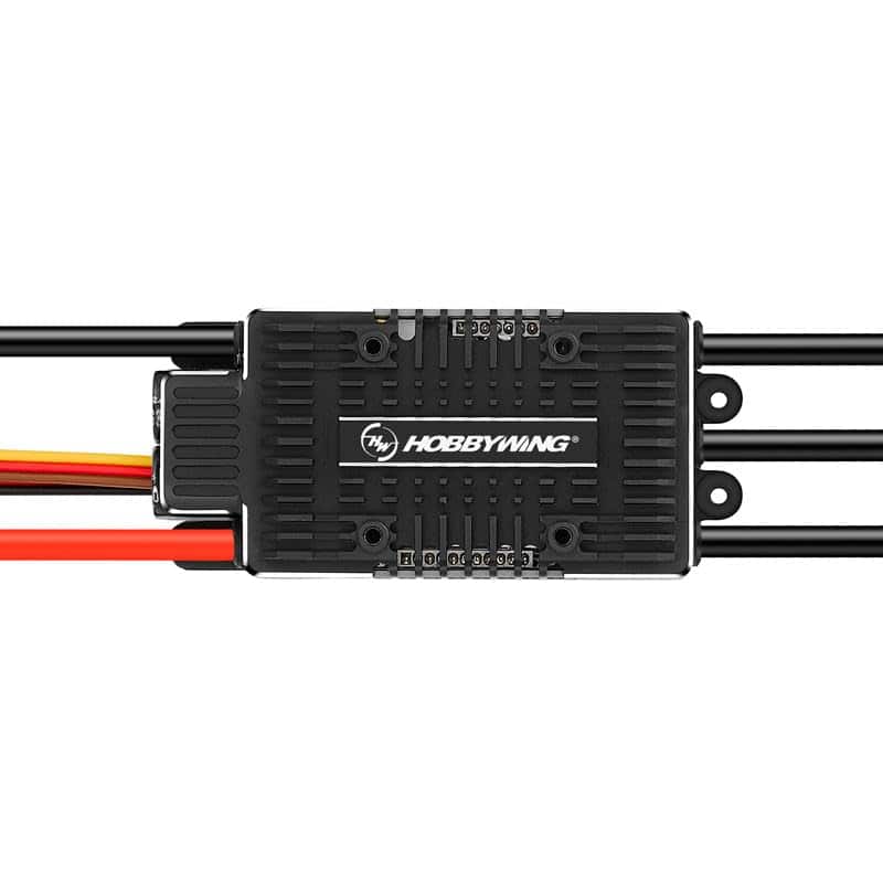 1. Platinum HV 180A V5 Rendimiento constante de velocidad mejorado, máxima experiencia de vuelo. El procesador de 32 bits combinado con el algoritmo de precisión de RPM hace que el ESC sea más potente y consistente, maximizando la precisión de RPM para mejorar el rendimiento general. La sensibilidad de velocidad constante ajustable permite a cada piloto encontrar fácilmente una configuración que se adapte a ellos personalmente. 2. Tamaño compacto con fuerte disipación de calor. El ESC está rediseñado con una estructura de disipación de calor hueca de doble cara, así como un diseño lateral adicional de «ventana». El aire es capaz de pasar rápidamente a través del interior del ESC y llevarse el calor generado por la placa de circuito interno. Este innovador diseño de conducto de aire es capaz de generar un fuerte flujo de aire en todo el ESC desde el ventilador de refrigeración, mejorando significativamente la capacidad de disipación de calor. 3. Basado en una excelente estructura de disipación de calor, el tamaño y el peso del ESC se reducen aún más, haciéndolo muy adecuado para modelos ligeros con requisitos de peso. Nota: La estructura de disipación de calor hueca de doble cara ha presentado una solicitud de patente, ¡por favor no la imite!. 4. BEC Switch de 12V incorporado, Mayor capacidad de salida. Switch BEC programable de alta corriente incorporado, voltaje de salida máximo de 12V (ajustable de 5 a 12V), corriente de salida máxima de hasta 35A. El BEC de alta potencia ha agregado un circuito antirretorno para usar en paralelo con baterías externas al mismo tiempo para proporcionar doble protección. 5. Soporte de múltiples protocolos de retorno, Gran adaptabilidad. Admite el sistema Mikado VBar, Futaba S.BUS2 y otros protocolos de retorno de datos de dispositivos. Los usuarios pueden ajustar parámetros en el dispositivo de control remoto (soporte de protocolo VBar) o verificar el estado de funcionamiento del ESC en cualquier momento. 6. Circuito anti-chispa incorporado. El circuito anti-chispa incorporado elimina efectivamente la chispa eléctrica generada cuando los conectores se enchufan a una batería, y prolonga la vida útil de los conectores. 7. Protecciones múltiples, Doble Seguridad. Tiene funciones de protección múltiple, incluida la protección de arranque, protección de corriente, protección de temperatura, protección de temperatura del condensador, protección de sobrecarga, protección de pérdida de señal del acelerador y protección de anormalidad en el voltaje de entrada, para prolongar eficazmente la vida útil del ESC.
