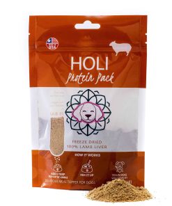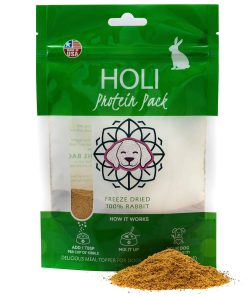 Los aderezos de comida HOLI para perros son un estimulante del apetito que le dará emoción a la hora de la comida. ¡Simplemente mezcle 1-2 cucharadas por taza de croquetas y vea cómo su cachorro lame el plato! No nos gusta comer lo mismo todos los días, y tampoco a nuestros perros. Agregar comida liofilizada o deshidratada a las comidas de nuestros cachorros es más que un saborizador de comida para perros. Es la mejor manera de agregar proteínas de ultra alta calidad a sus dietas. Su cachorro obtendrá los beneficios de la comida cruda para perros sin desorden y de una manera segura y saludable.