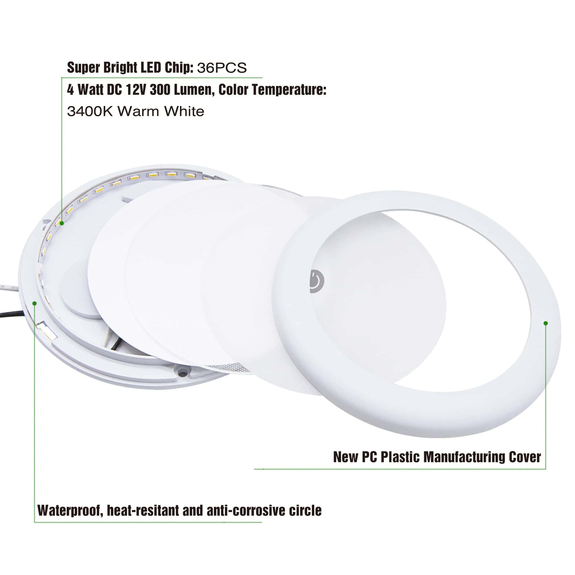 Fácil instalación mediante montaje superficial adecuado para cabaña, bajo gabinete, cocina, armario, RV, barco, techo, velero, remolques.