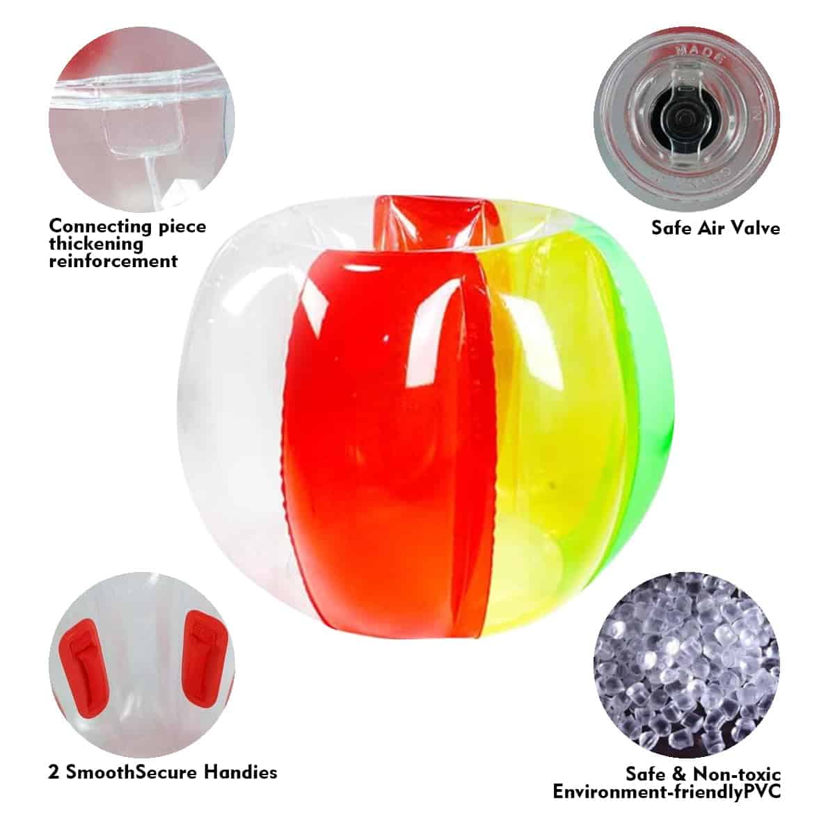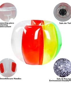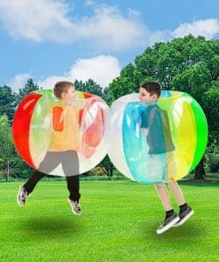 1. Bumper Balls: Sumo balls es adecuado para una amplia gama de escenarios, ya sea reuniones familiares, actividades al aire libre o fiestas de cumpleaños, puede crear un ambiente alegre. Una bola de parachoques que rompe las limitaciones del espacio, permitiendo que la risa se propague en cualquier momento y lugar. 2. Seguro y Confiable: Las Bumper Balls están diseñadas para la seguridad, con 2 mangos resistentes a las grietas y soldados con alta frecuencia para un buen agarre. Incluye 2 correas de seguridad ajustables que mantienen la bola fijada en su lugar y protegen la cabeza y el cuello de lesiones durante el juego. 3. Fácil de Inflar: La bola de parachoques inflable es increíblemente fácil de usar, no requiere habilidades especiales para inflar o desinflar. Con una bomba eléctrica o de aire estándar (no incluida), puedes inflar rápidamente la bola y estar listo para jugar en solo minutos. ¡NO SOBREINFLAR! 4. Resistente y Duradero: hecha de PVC de alta calidad, bien sellado y sin olor. Ha pasado rigurosas pruebas de durabilidad y tiene una excelente resistencia a la abrasión y al desgarro, adecuado para un uso a largo plazo. Este set de bola sumo con amortiguación inflable lo hace seguro para la diversión de los niños. Se requiere supervisión de un adulto. 5. IMPRESCINDIBLE PARA JUEGOS AL AIRE LIBRE – Anima a los niños a salir para actividades divertidas y saludables que desarrollen la coordinación, el equilibrio y la competencia amistosa. Perfecto para juegos en reuniones familiares, picnics, barbacoas, cumpleaños, actividades de camping, playa, deportes de nieve, parques o en tu propio patio trasero. 6. Fábrica Profesional, Soporte Técnico Profesional Nos enfocamos en ofrecer productos de alta calidad a un precio justo. Si no estás satisfecho con nuestro producto, contáctanos.