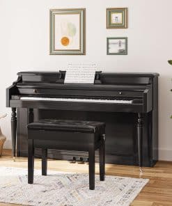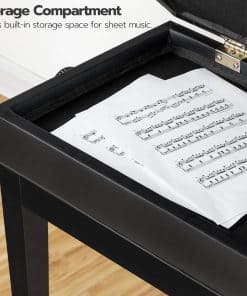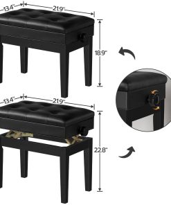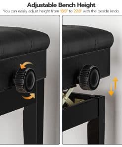 El banco de piano ajustable de HOOBRO es la elección perfecta para aquellos que buscan comodidad y durabilidad al tocar el piano. Con un asiento acolchado de cuero PU suave, el banco garantiza una experiencia de juego cómoda durante horas. Además, el tapón superior con 6 botones decorativos añade un toque clásico y elegante al diseño. La altura del banco se puede ajustar fácilmente de 18.9″ a 22.8″ con el perno de ajuste lateral, permitiéndole encontrar la altura perfecta para tocar. Además, el compartimiento de almacenamiento oculto debajo del asiento le brinda espacio adicional para guardar sus partituras, afinadores y otros accesorios. Las patas de madera maciza garantizan una durabilidad duradera y una capacidad de carga de hasta 300 lb, mientras que los pies de goma evitan los rayones en sus pisos. El montaje es rápido y sencillo gracias a las instrucciones detalladas y las piezas numeradas. Disfrute de su práctica de piano con el banco de piano ajustable de HOOBRO.