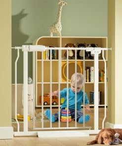Diseño Montado: Nuestras puertas estrechas para bebés usan un sistema de doble bloqueo para limitar el acceso de niños o mascotas y mantenerlos seguros. Los adultos pueden levantar fácilmente la manija con una mano pero es difícil para los niños. Esta puerta de bebé se cerrará automáticamente cuando se suelte la manija. El diseño de doble cara le permite abrir en cualquier dirección. Altura de 30 pulgadas. La distancia de 2 pulgadas entre las barras verticales puede evitar que sus bebés y mascotas se escapen o se les quede la cabeza atascada. Variedad de Opciones de Ancho para Elegir: Nuestra puerta de seguridad para bebés tiene diferentes anchos para elegir: diferentes tamaños con paneles de extensión, todos los tamaños pueden ajustarse fácilmente, se adapta a espacios estrechos o anchos de 25 a 81 pulgadas. Por favor mida cuidadosamente sus aperturas antes de comprar. Características de la Puerta de Seguridad HOOEN: Puerta de apertura ancha garantiza que los adultos puedan pasar fácilmente Se adapta a aperturas estrechas a anchas de entre 25 y 81 Pulgada doble cara y auto-cierre Operación con una sola mano con función de presionar y levantar Fácil instalación montada a presión sin herramientas de hardware para proteger la pared Construcción de metal resistente y resistente Fácil Instalación: Esta puerta de bebé montada a presión es super fácil y rápida de instalar y quitar. Lo único que necesita hacer es ajustar los 4 varillas de husillo independientemente a la pared. Si elige el tamaño con paneles de extensión, es muy simple de agregar. Simplemente use los tornillos que aseguran la puerta en el extremo exterior de la extensión y empújelos hacia la puerta hasta que estén apretados. MULTI-FUNCIONES: Adecuado para escaleras, pasillos, puertas, cocina, salas de estar y cualquier espacio abierto al aire libre.