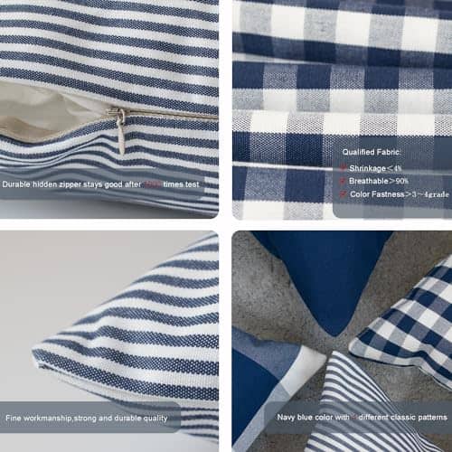 5. DISEÑO – Patrón simple, color azul marino y blanco, dan un estilo campestre a su casa. Estas almohadas decorativas se verán hermosas en su sofá, sofá o silla. ¡Descubrirá que las fundas de almohada son exactamente lo que estaba buscando!