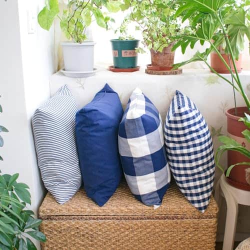 1. Funda de almohada azul y blanca de tamaño 22×22 pulgadas / 55x55cm (desviación de 1-2cm). Este juego viene con 4 fundas de almohada, NO SE INCLUYEN INSERTOS DE ALMOHADA.