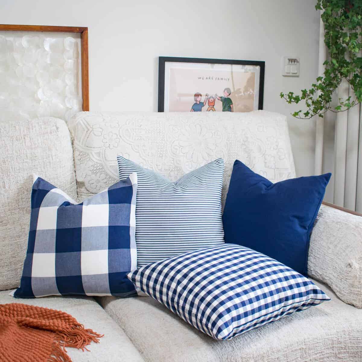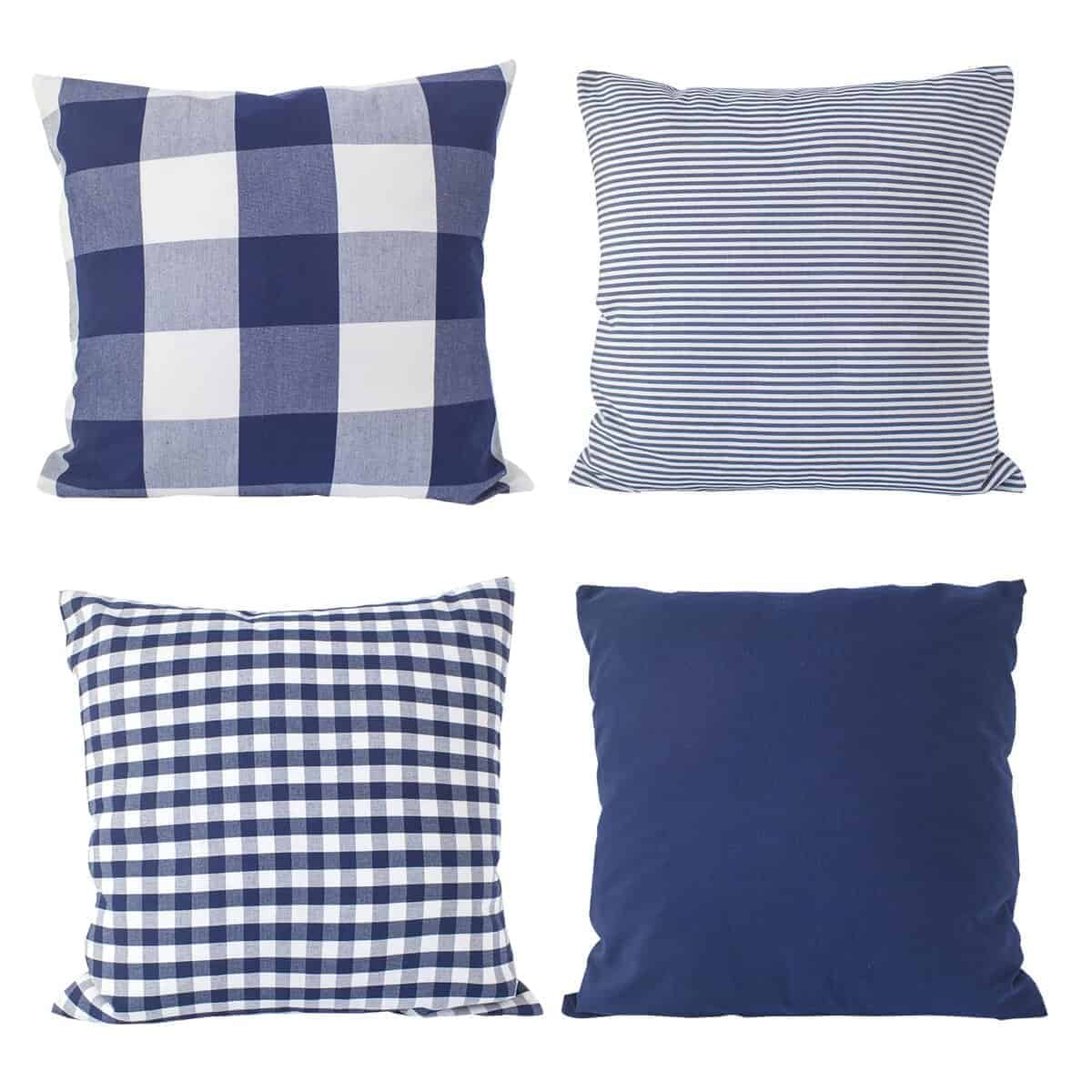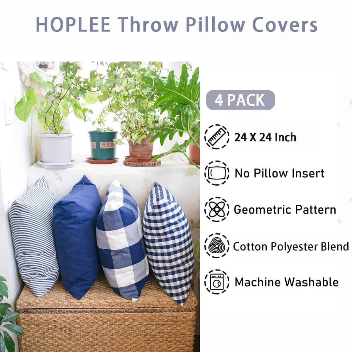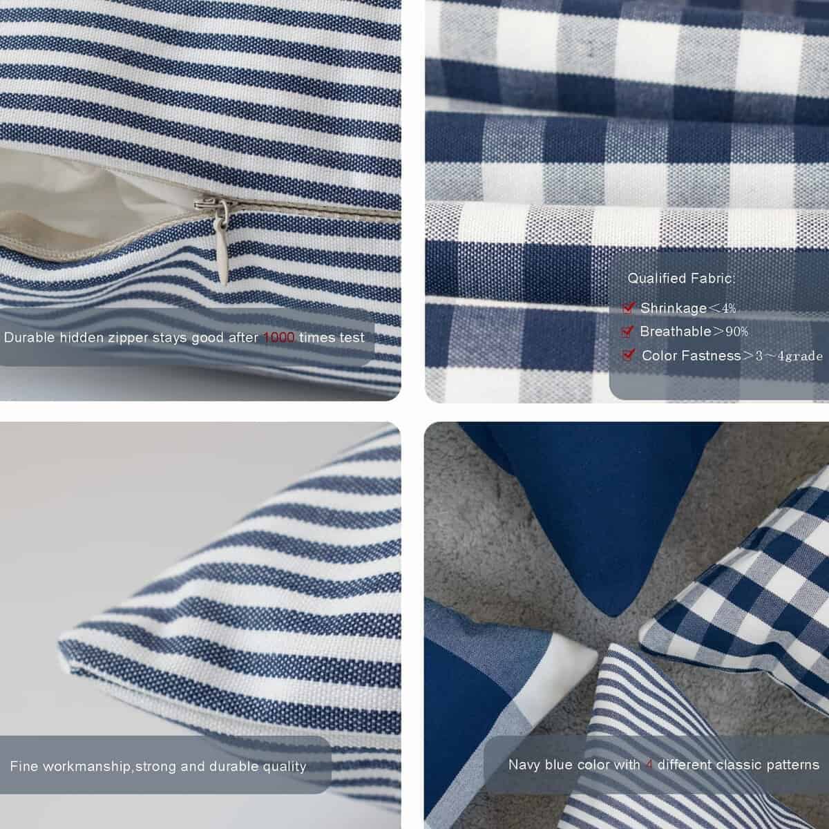 Blue and white throw pillow cover size: 24×24 inch / 60x60cm(1-2cm deviation).This set come with 4 pieces pillow covers,NO PILLOW INSERTS INCLUDED. The navy throw pillows for couch comes with 4 pieces navy blue and white geometric pillow covers, same pattern on both sides. The decorative pillow covers are matched with invisible zipper. Disassemble freely, convenient to change. Help you decor your home more gorgeous with these farmhouse pillow covers. The style of these decorative pillow cases is suit to many occasions. Home s couch/sofa, living room, bed room and window seat. Or for coffee shop and Car etc.They will add a farmhouse style for your home. DESIGN – Simple pattern, navy blue and white color, give farmhouse style for your house.These decorative pillows will look beautiful on your couch, sofa or chair. You will find that the pillow covers are exactly what you were looking for!