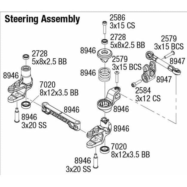 Servo saver bellcrank de aluminio Hot Racing para el TRA Maxx 1/10. CARACTERÍSTICAS: – Construcción de aluminio mecanizado CNC – Brazo de dirección ajustable con resorte que protege los engranajes del servo durante impactos – Dos resortes salvavidas adicionales (suave y duro en comparación con el resorte TRA de fábrica) INCLUYE: – Un (1) servo saver bellcrank con rodamiento – Resorte salvavidas duro (plateado) – Resorte salvavidas suave (negro) REQUISITOS: – Se recomienda usar un adhesivo de bloqueo de rosca removible en los tornillos que se enroscan en metal – Usar una grasa de alta presión en las superficies de leva del servo saver puede suavizar la acción del servo saver ESPECIFICACIONES: – Rodamiento 8x12x3.5 – Rodamiento 5x8x2.5 COMENTARIOS: – Reemplaza los brazos de dirección TRA de plástico 8946