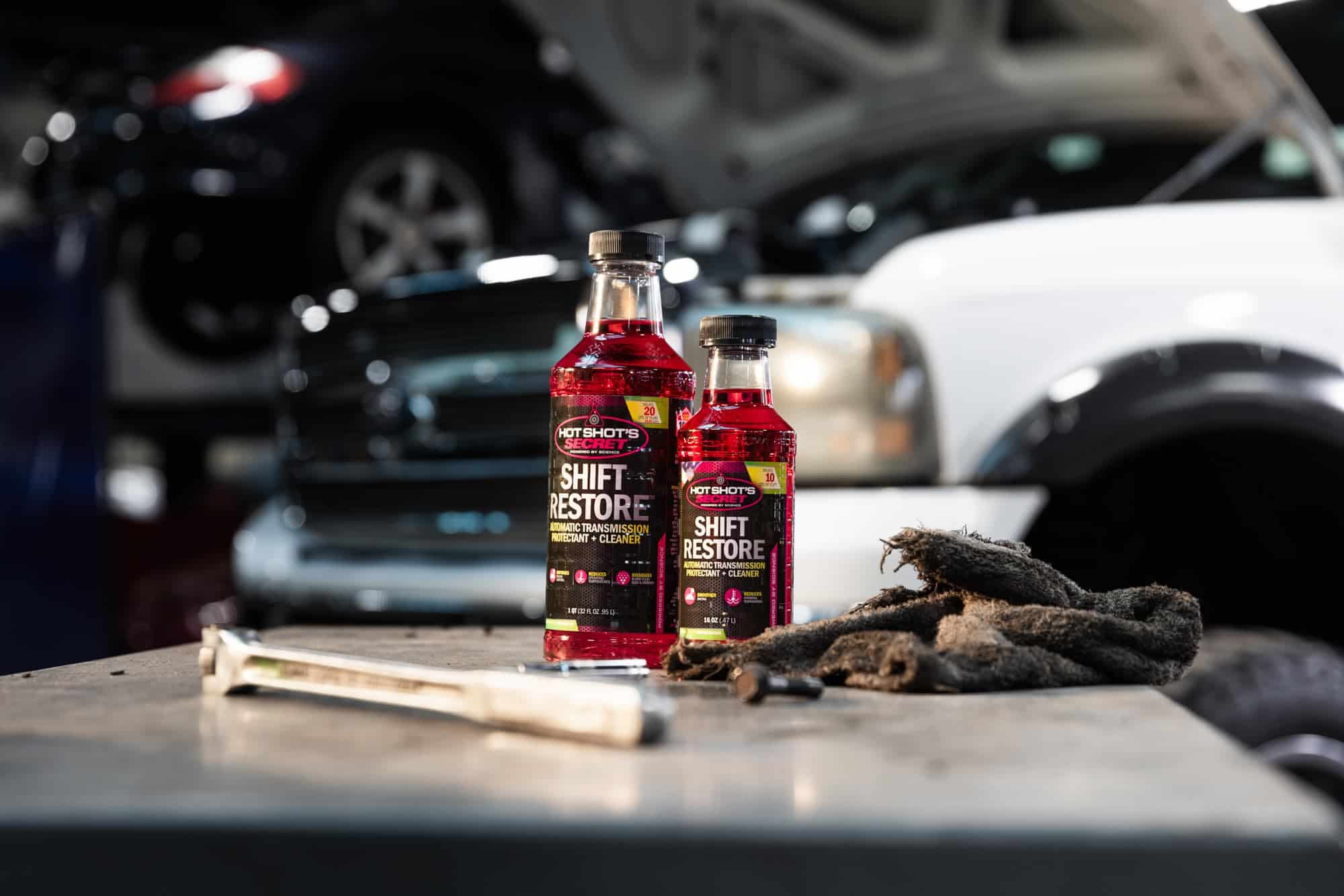 Para usar Hot Shot’s Secret Shift Restore, agregue 1.5 onzas por cuarto de líquido de transmisión a su motor. Una concentración del 5% de Shift Restore, o un tratamiento de 1.5 onzas por cuarto, es la cantidad perfecta para ayudar a que su vehículo alcance la máxima reducción de fricción. Aumentando la concentración hasta el 7.5%, o 2.4 onzas por cuarto, puede lograr la máxima protección de sellos y anillos. Úselo en transmisiones automáticas o CVT, no para transmisiones manuales.