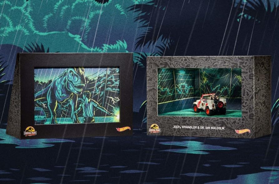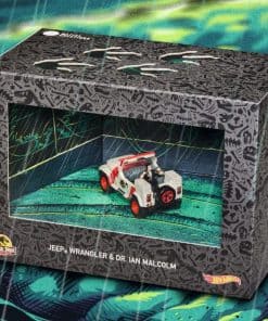 En honor al 30 aniversario de la película de éxito de 1993 Jurassic Park, recreamos el intenso momento en el que el Dr. Ian Malcolm se encuentra en la parte trasera de un Jeep Wrangler, que debe ir más rápido, perseguido por un hambriento T. rex. El set incluye nuestro Jeep Wrangler Sahara modificado del ’93 con ruedas Real Riders fifteen52, y la figura del Dr. Malcolm unida a la parte trasera. El embalaje de la ventana presenta pósters de arte que representan la escena y agregará un elemento de terror a tu colección.