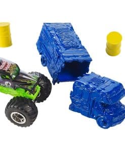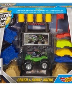 The Monster Jam action is on the run with an assortment of Hot Wheels play sets designed for portability. Close them to carry by the handle, or open them up to set the Monster Jam excitement free! With the Crash & Carry Arena Play Set you can send the Monster Jam truck (included) hurtling over the jump or set up obstacles, like crushable cars or a breakable bus, for even more classic smashing and crashing action. The Monster Jam Sto ‘n Go Playmat Arena includes a carrying crate with everything you need like an illustrated arena map that is huge -perfect for placing ramps and obstacles to recreate live Monster Jam action anywhere you go! Each set includes one Monster Jam 1:64 scale truck.