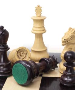 Estas piezas de ajedrez han sido finamente elaboradas por nuestros artesanos que han heredado esta habilidad por tantos años. Desde la perfección del Rey hasta los detalles mínimos de la melena del caballo, estas piezas de madera de Rosal Anillada (Acacia Rhodoxylyn) y Boj tienen almohadillas de terciopelo verde en la parte inferior.