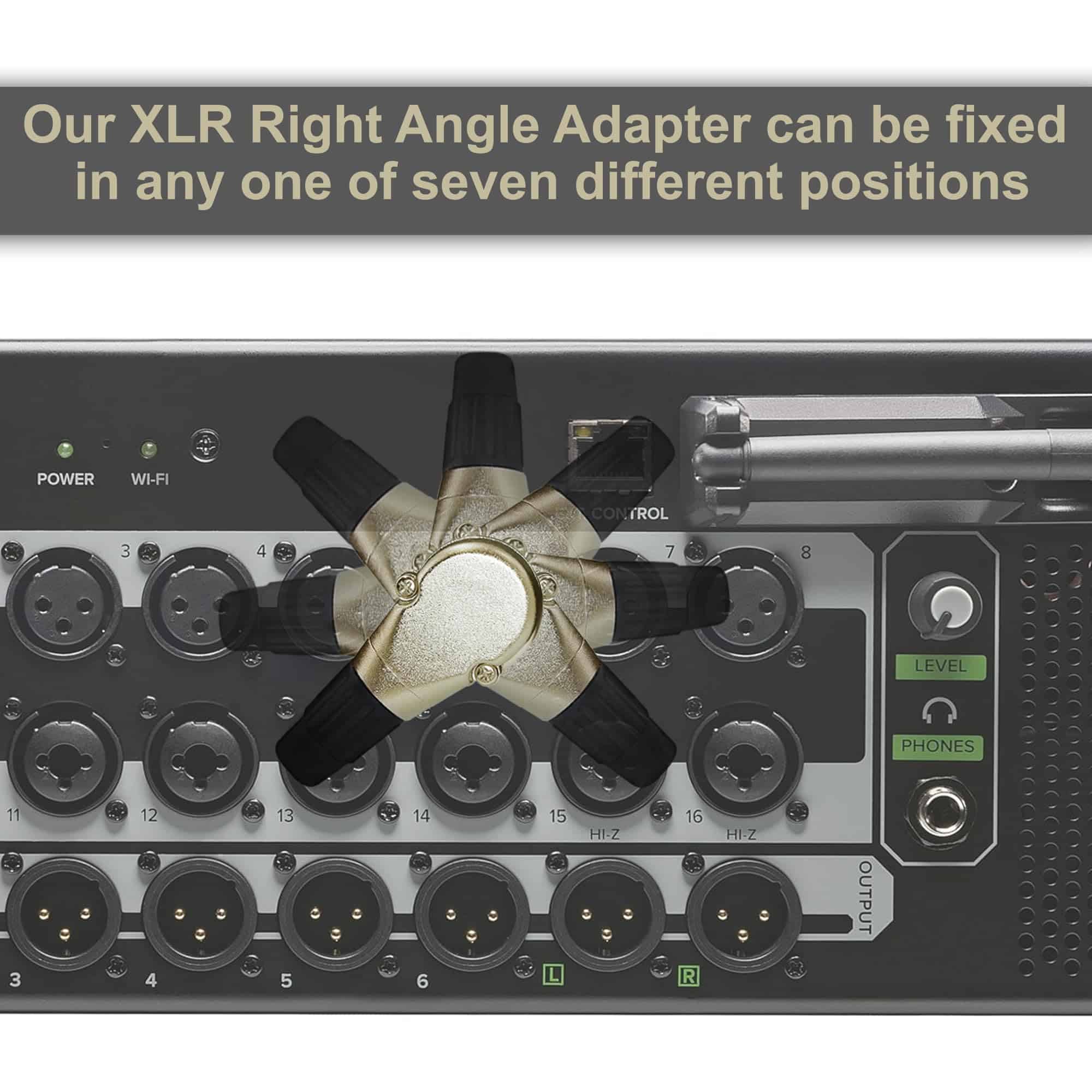 2. Nuestro Adaptador de Ángulo Recto XLR se puede fijar en cualquiera de siete posiciones diferentes;.