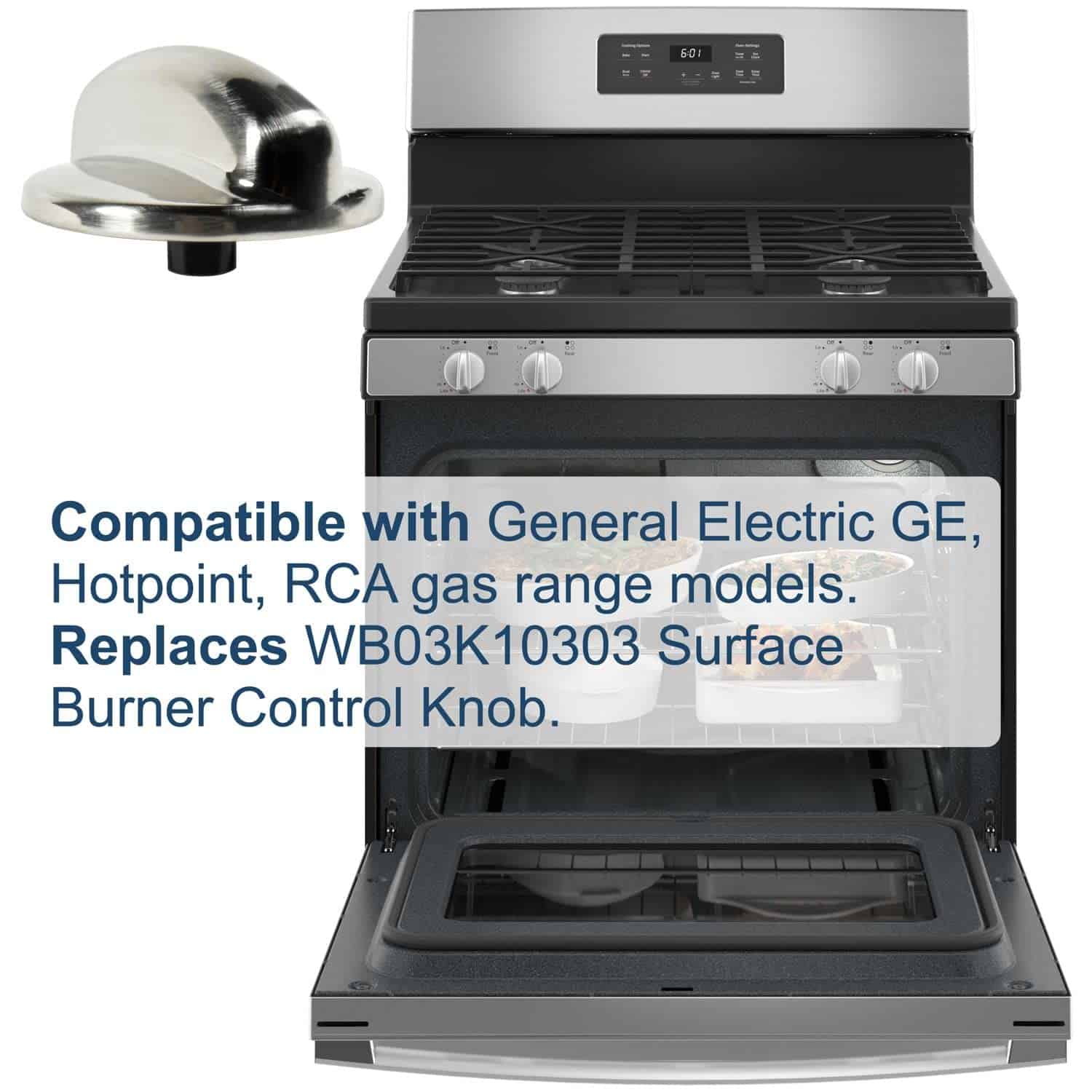 Reemplace las perillas de control de la estufa con HQRP 4-Pack Surface Burner Cooktop Control Knobs. Estas perillas de color cromo están fabricadas con acero inoxidable y cuentan con una pieza trasera de plástico negro. Con un vástago en forma de D con inserto de metal de 0.2 pulgadas de tamaño, estas perillas miden 2.3 pulgadas x 1.3 pulgadas. Son de alta calidad y fáciles de instalar. Compatible con los modelos de estufas a gas General Electric GE, Hotpoint, RCA. Incluye las perillas de reemplazo para los modelos PGB975SEM4SS, PGB975SEM3SS, PGB975SEM2SS, PGB975SEM1SS, PGB928SEM3SS, PGB928SEM2SS, PGB928SEM1SS, PGB918SEM4SS, PGB918SEM3SS, PGB918SEM2SS, PGB918SEM1SS, PGB916SEM4SS, PGB916SEM3SS, PGB916SEM2SS, PGB916SEM1SS, PGB910SEM4SS, PGB910SEM3SS, PGB910SEM2SS, PGB910SEM1SS, PGB908SEM4SS, PGB908SEM3SS, PGB908SEM2SS, PGB908SEM1SS, PGB900SEM5SS, PGB900SEM4SS, PGB900SEM3SS, PGB900SEM2SS, PGB900SEM1SS, P2B918SEM4SS, P2B918SEM3SS, P2B918SEM2SS, P2B918SEM1SS, P2B912SEM3SS, P2B912SEM2SS, P2B912SEM1SS, JGB928SEL2SS, JGB928SEL1SS, JGB918SEL3SS, JGB918SEL2SS, JGB918SEL1SS, JGB916SEL3SS, JGB916SEL2SS, JGB916SEL1SS, JGB908SEL5SS, JGB908SEL4SS, JGB908SEL3SS, JGB908SEL2SS, JGB908SEL1SS, JGB900SEL2SS, JGB900SEL1SS, J2B918SEL2SS, J2B918SEL1SS, J2B912SEL2SS, J2B912SEL1SS.