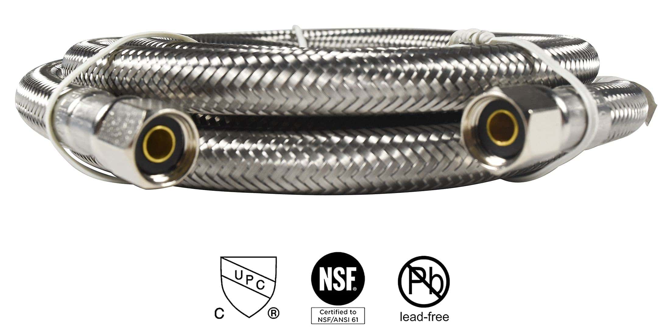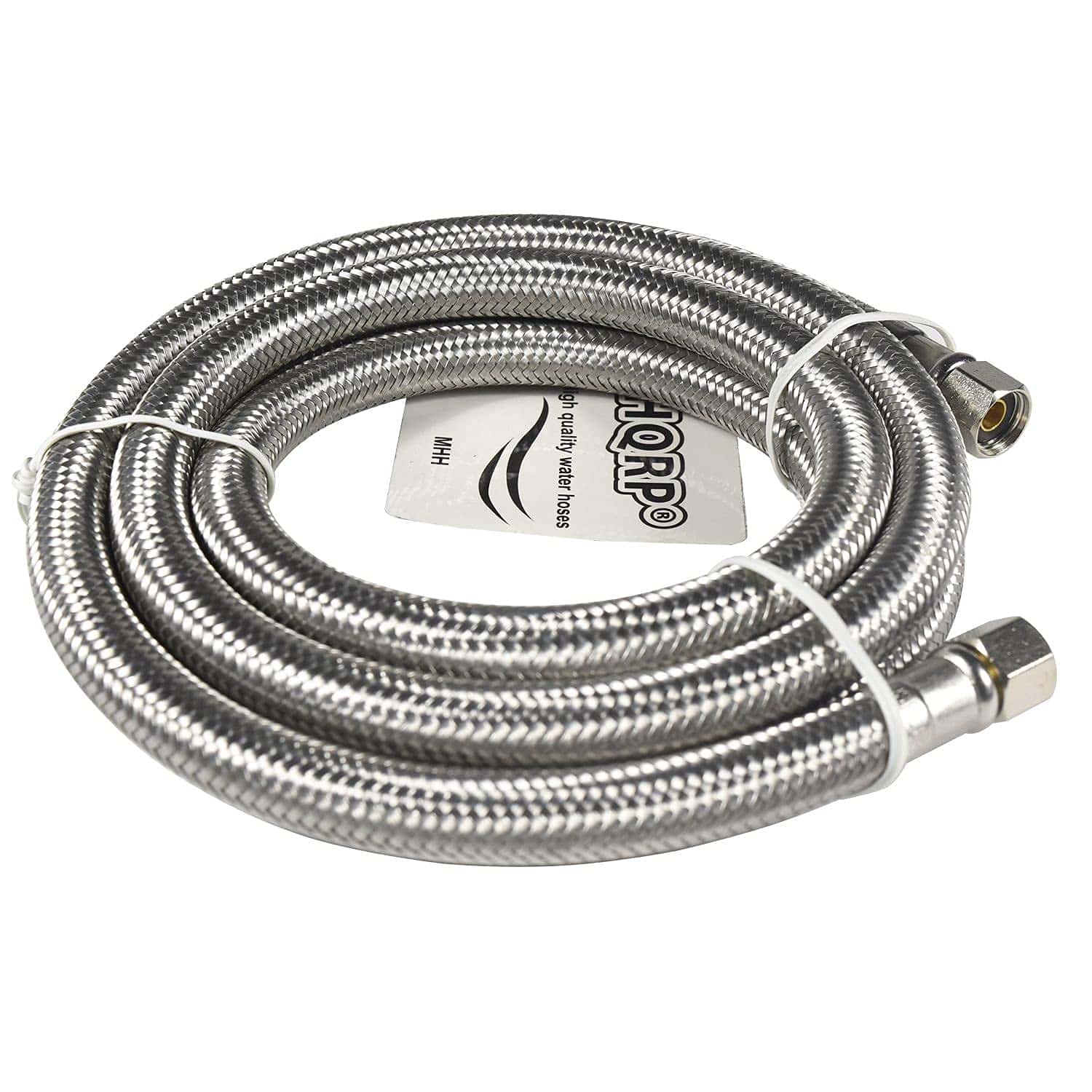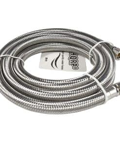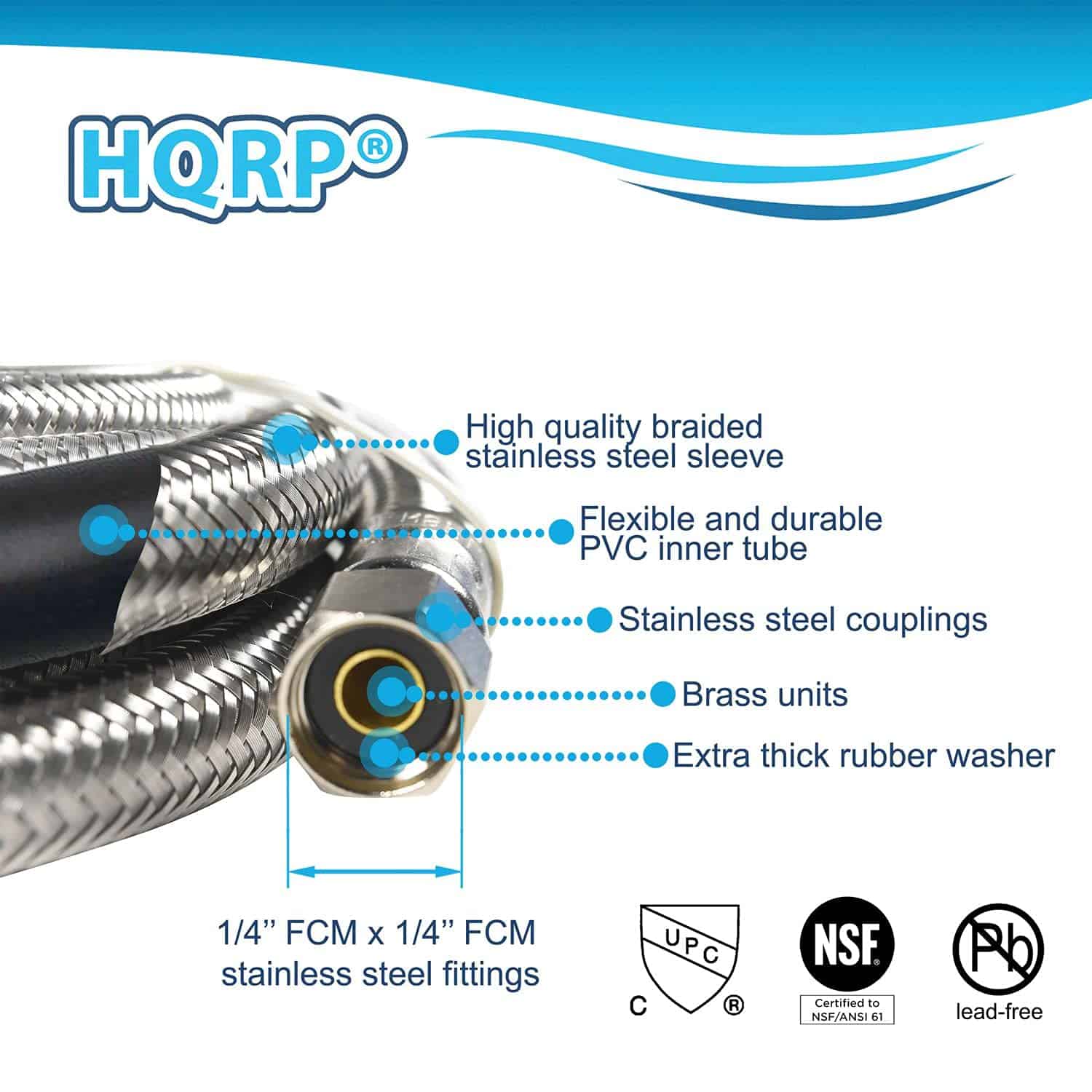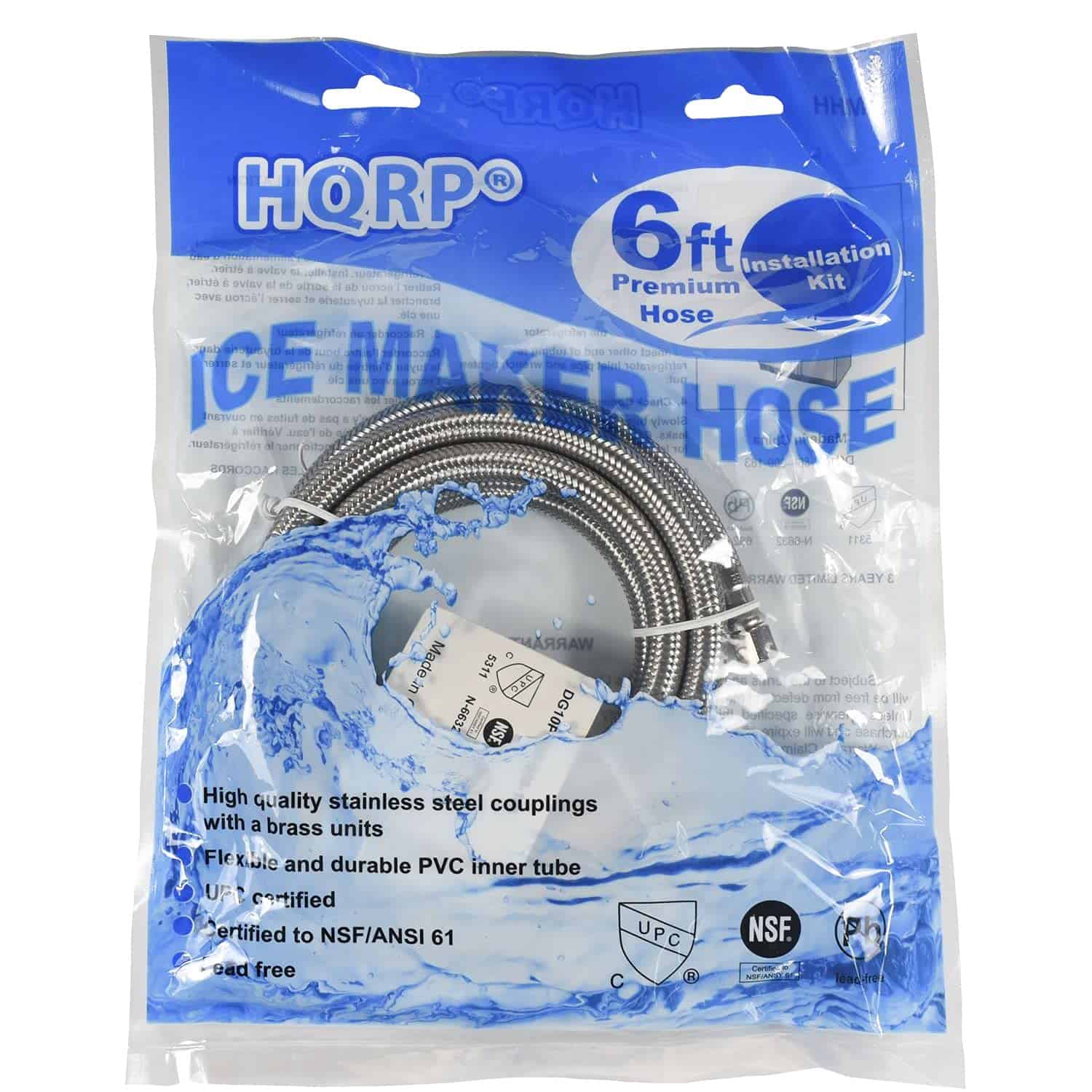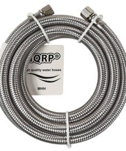 HQRP 2-Pack Universal Premium Braided Stainless Steel Refrigerators/Ice Makers Hoses es un juego de dos mangueras de acero inoxidable trenzado para uso en refrigeradores y máquinas de hielo. Estas mangueras tienen una longitud de 6 pies y vienen con conexiones de acero inoxidable de 1/4″ FCM x 1/4″ FCM. Son universales y se adaptan a la mayoría de los refrigeradores y máquinas de hielo. Están certificados por UPC y NSF 61 para garantizar la seguridad del usuario. Las mangueras están diseñadas para ser a prueba de explosiones, utilizando Acero Inoxidable 304 Real para la cubierta trenzada exterior para una protección efectiva contra la oxidación y explosiones. Son fáciles de instalar y son compatibles con marcas como Samsung, Whirlpool, GE, Frigidaire, Eastman, Kenmore, entre otras. El paquete incluye una garantía de 1 año para mayor tranquilidad del cliente.
