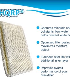 HQRP Filtro de Mecha para Humidificador mejora la eficiencia de su humificador atrapando depósitos minerales del agua. Para un rendimiento óptimo, el filtro del humidificador debe ser reemplazado al comienzo de cada temporada y luego cada 4-6 semanas, dependiendo del uso y la dureza del agua. Compatible con Bionaire BWF1500 / BWF1500-UC / BWF75 / HWF75. El repuesto se ajusta a los humidificadores Bionaire BCM3656, BCM3855, BCM3955, BCM3656-UM, BCM3855C, BCM3600.
