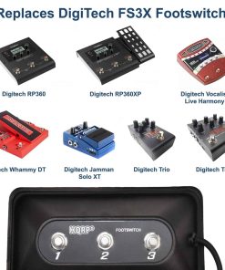 Pedal de Pie Multipropósito de Tres Funciones HQRP con plug de 1/4″. CALIDAD: El pedal HQRP está hecho de componentes metálicos de calidad (botones, partes internas y plugs). El recinto moldeado garantiza un largo período de uso. El cable de 14 pies proporciona un amplio área de uso. El plug de ángulo recto de 1/4″ no causa la flexión del cable cerca de la conexión. ERGONÓMICO: El pedal tiene la parte superior inclinada que facilita la presión. La disposición conveniente de los botones asegura el cambio rápido y fácil de los efectos. El plug de ángulo recto de 1/4″ es conveniente para su aplicación. AMIGABLE CON EL USUARIO: Los botones se encuentran a una distancia cómoda entre sí. Para un uso fácil, los botones están numerados. El Pedal de Pie de 3 Botones HQRP reemplaza SOLAMENTE el Pedal FS3X de DigiTech y es compatible SOLAMENTE con los modelos mencionados en la descripción del producto. Compatible con Digitech Jamman Solo XT, Compatible con Digitech RP360, Compatible con Digitech RP360XP, Compatible con Digitech Vocalist Live Harmony, Compatible con Digitech Trio, Compatible con Digitech Trio+, Compatible con Digitech Whammy DT
