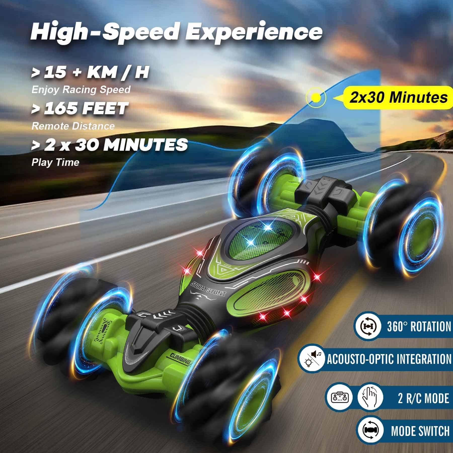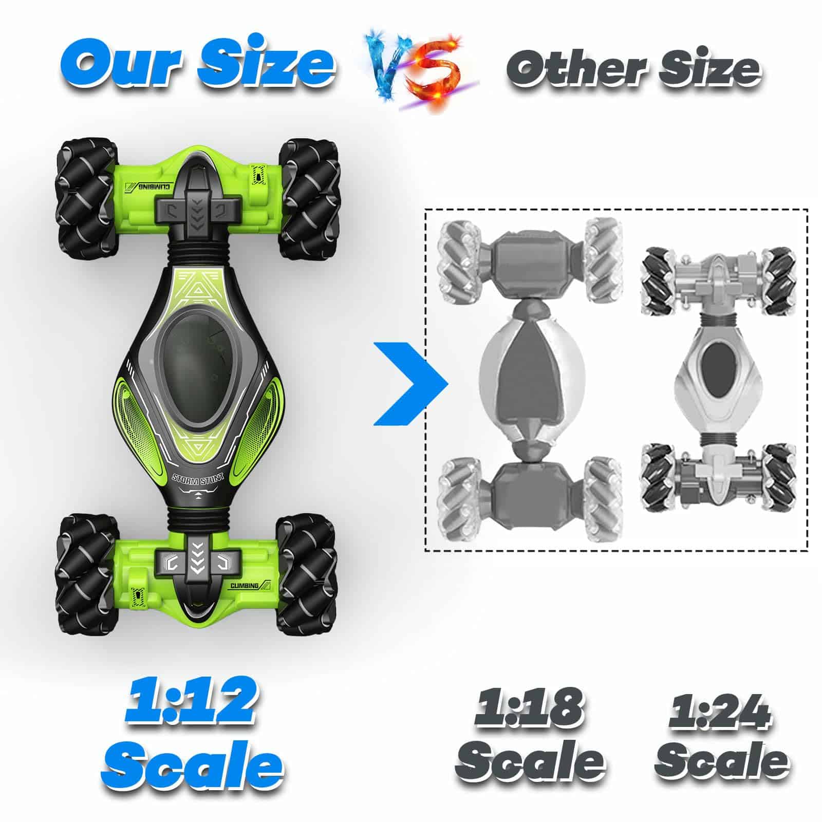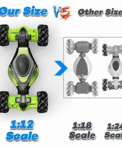 1. Coche de acrobacias Rc a gran escala: Coche de acrobacias RC a escala 1:12 con 2 modos de control: control remoto y control de reloj sensor de gravedad. Controle el coche RC con gestos de su mano, el juguete irá a modo de giro, movimiento, rotación, rodar y restablecer.