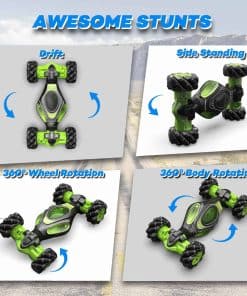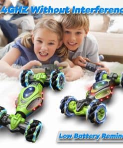2. Acrobacias geniales y derivas completas: Nuevo coche de acrobacias RC 4WD actualizado puede deriva lateral y diagonal, rotación de 360, manejo de doble cara, manejo autónomo y cambiar de modo de 360 y reinicio con flexibilidad. Con luces de colores y efecto de sonido, los coches RC son los juguetes de coche más populares para niños de 8 a 12 años en adelante.