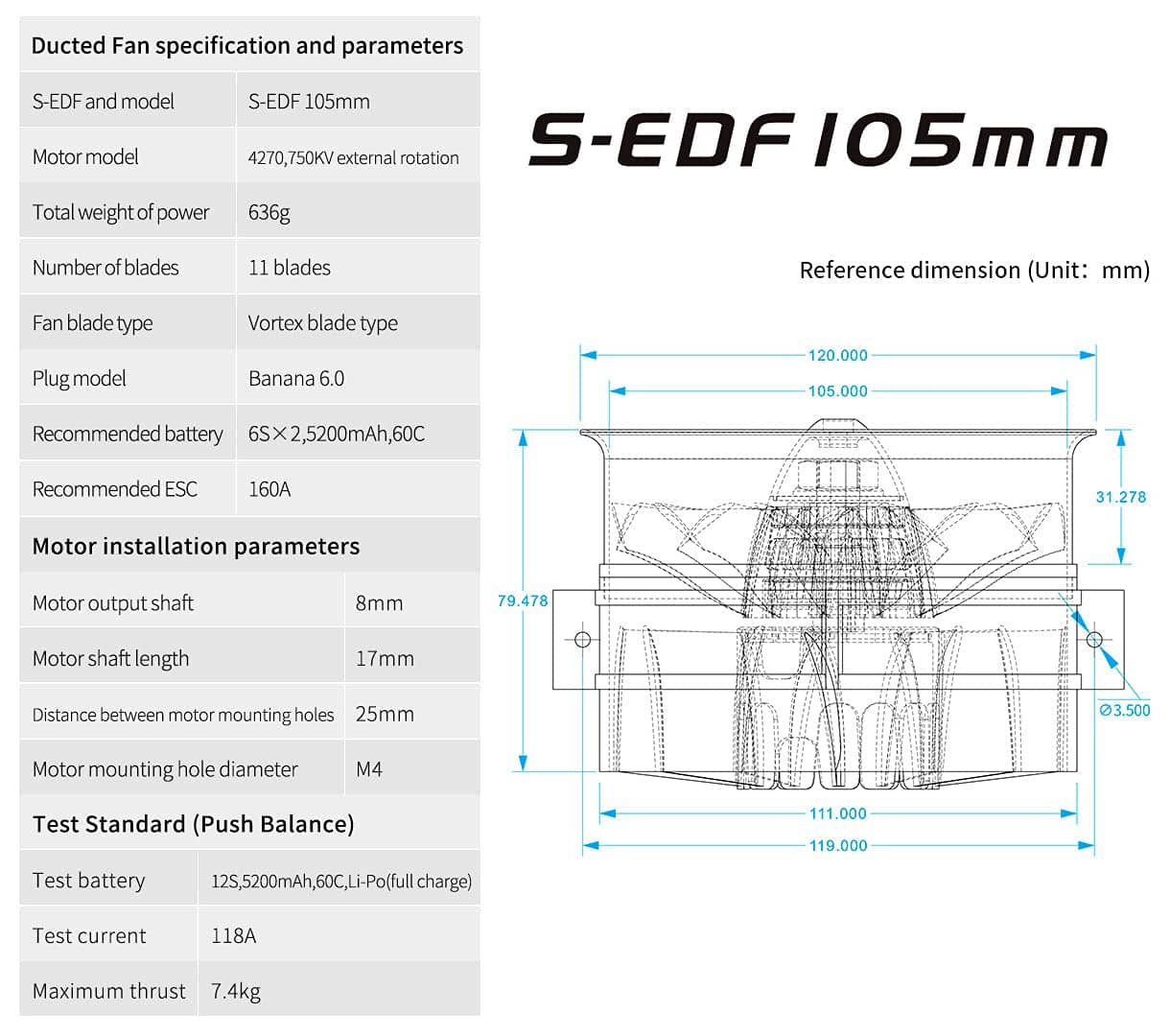 HSDJETS 105mm EDF Semimetal Electric Ducted Fan 12S 750KV