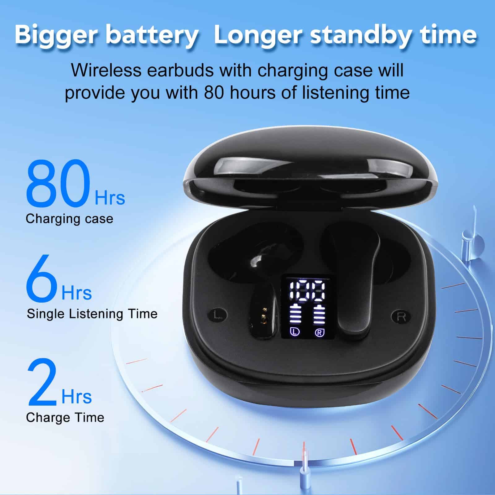 5. Vida útil ultra larga de la batería Nuestros auriculares de traducción pueden extender la vida útil de la batería, brindando hasta 4 horas de tiempo de escucha y un rango de comunicación de 10 metros, con función de carga rápida, garantizando una mayor conveniencia ya sea que esté traduciendo o disfrutando de la música.