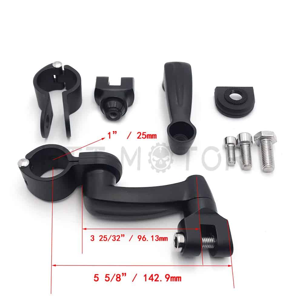 Compatibilidad: Se adapta a cualquier motocicleta con una barra de motor o tubo de bastidor de 1″ / 25 mm. Ideal para Harley Davidson/Kawasaki/BSA/Norton/Triumph Bobber, Chopper, Cafe racer, ATV, UTV, Scooter, etc. GoldWing GL1800 2001-2011, GoldWing GL1500 GL1100 GL1200, VT750 Shadow 750 VT750C ACE, VT1100 VTX1300 VTX1800, Magna 750 VF750 VF1100, VLX600 DLX600 Shadow 600 VT600, Shadow 400 steed400, Valkyrie 1800 2004 2005, 1998 1999 2000 2001 2002 2003 Valkyrie, TRIUMPH ROCKET 3 2300cc, Harley Davidson Sportster 883 xl1200 1340, V-STAR XVS1300 XVS650 XVS950 XVS1100, XV1600 XV1700 XV1900 XVS1900, XV250 XV400 XV535 XV750 XV1100 Virage, Roadstar xv1700, SUZUKI VL1500 VL800 VZ800 VL125 VL250, SUZUKI VS1400 VZ1500 INTRUDER M800 C800, SUZUKI INTRUDER C1800RT M109R C109R, SUZUKI BOULEVARD M90 S50 M50Z C90 M1500, KAWASAKI VULCAN VN400 VN800 VN900 VN1500 VN2000