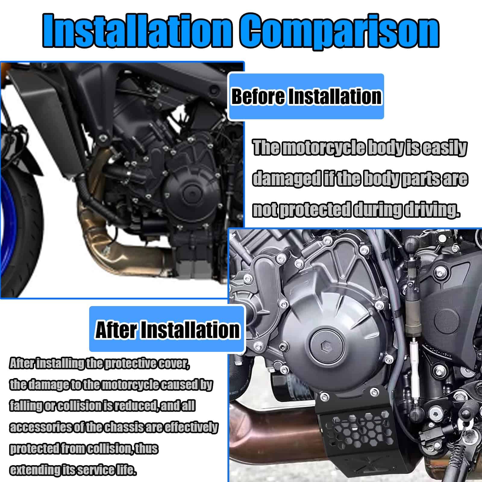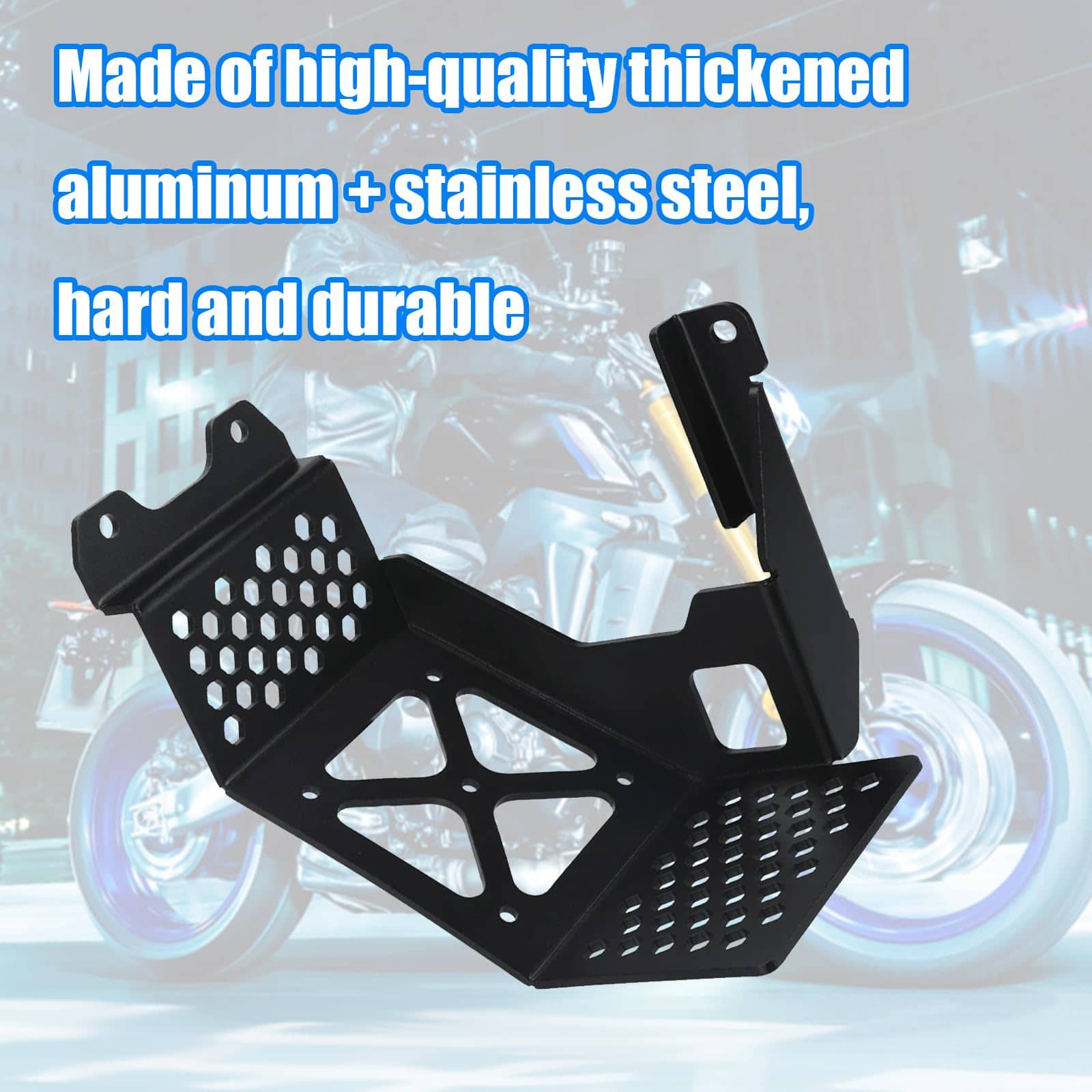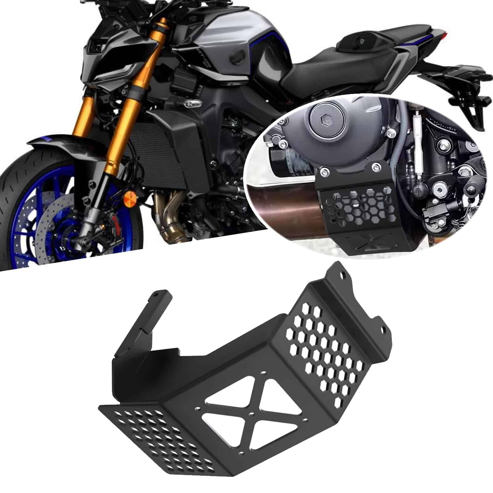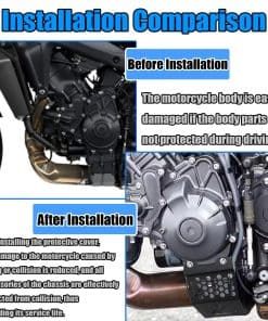 Características Este producto puede proteger su motor, a prueba de viento, a prueba de arena, conducción segura, del viento y la lluvia, especialmente del viento y la lluvia, haciéndolo más cómodo al conducir. Mejora completamente la apariencia de tu motocicleta para que sea más deportiva. Hecho de aluminio de alta calidad engrosado + acero inoxidable, material resistente a impactos, resistente a los rayos UV, no es fácil de oxidar, no es fácil de romper, impermeable y resistente a altas temperaturas, conducción segura. Protege eficazmente el motor, es una pieza protectora sólida que bloquea el polvo y los escombros. Protege tu motor y extiende su vida útil. Reforzado para proteger tu seguridad al conducir en caso de colisión. La cubierta del chasis del motor protege la bandeja de aceite del motor, el sistema de refrigeración y otras partes importantes de impactos directos cubriendo áreas clave. La cubierta del chasis puede proporcionar protección adicional contra daños por colisión y extrusión durante el transporte. Una parte importante para evitar rayones y daños en el motor y las partes inferiores. Apariencia exquisita: fabricado profesionalmente, mano de obra fina, diseño elegante, diseño de moda que asegura un ajuste perfecto e instalación fácil, mientras hace que tu motocicleta se vea más moderna, haciéndote llamativo al montar en motocicleta y proporcionando una decoración perfecta para tu motocicleta. Fácil de instalar, pero las instrucciones de instalación no están incluidas. Para MT09 MT 09 MT-09 SP 2021 2022 2023 2024 2025 Para MT09 2021 2022 2023 2024 2025 Para MT09 SP 2021 2022 2023 2024 2025 (Por favor, asegúrate de que este producto es adecuado para tu motocicleta antes de comprar).