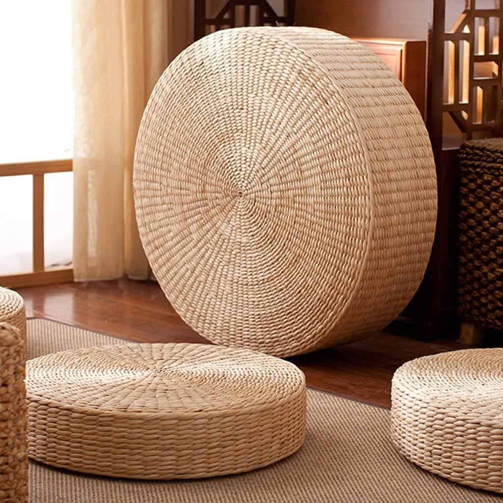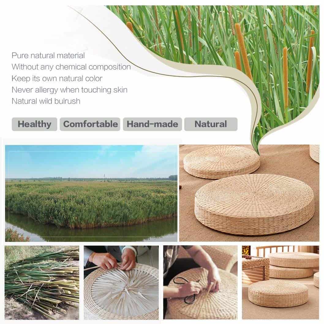 Alfombrilla de asiento artesanal de paja ecológica y sostenible muy grande. Hecha a mano con paja natural y sostenible, es ideal para su sala de estar, verano y actividades al aire libre. Esta almohadilla de asiento redonda y acolchada está hecha de material trenzado de paja con buena permeabilidad. Es una almohadilla natural, sin contaminación y decorativa para su hogar.