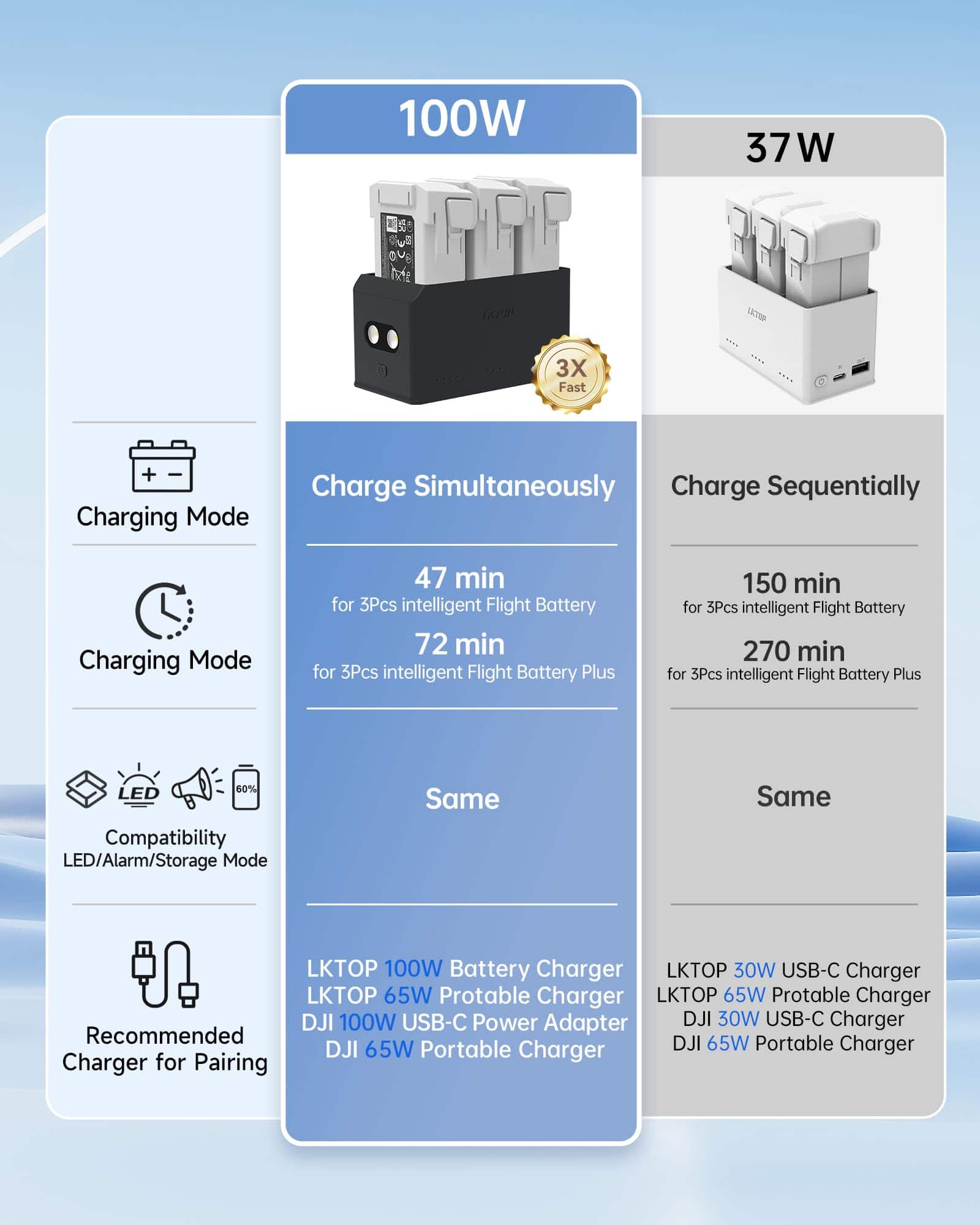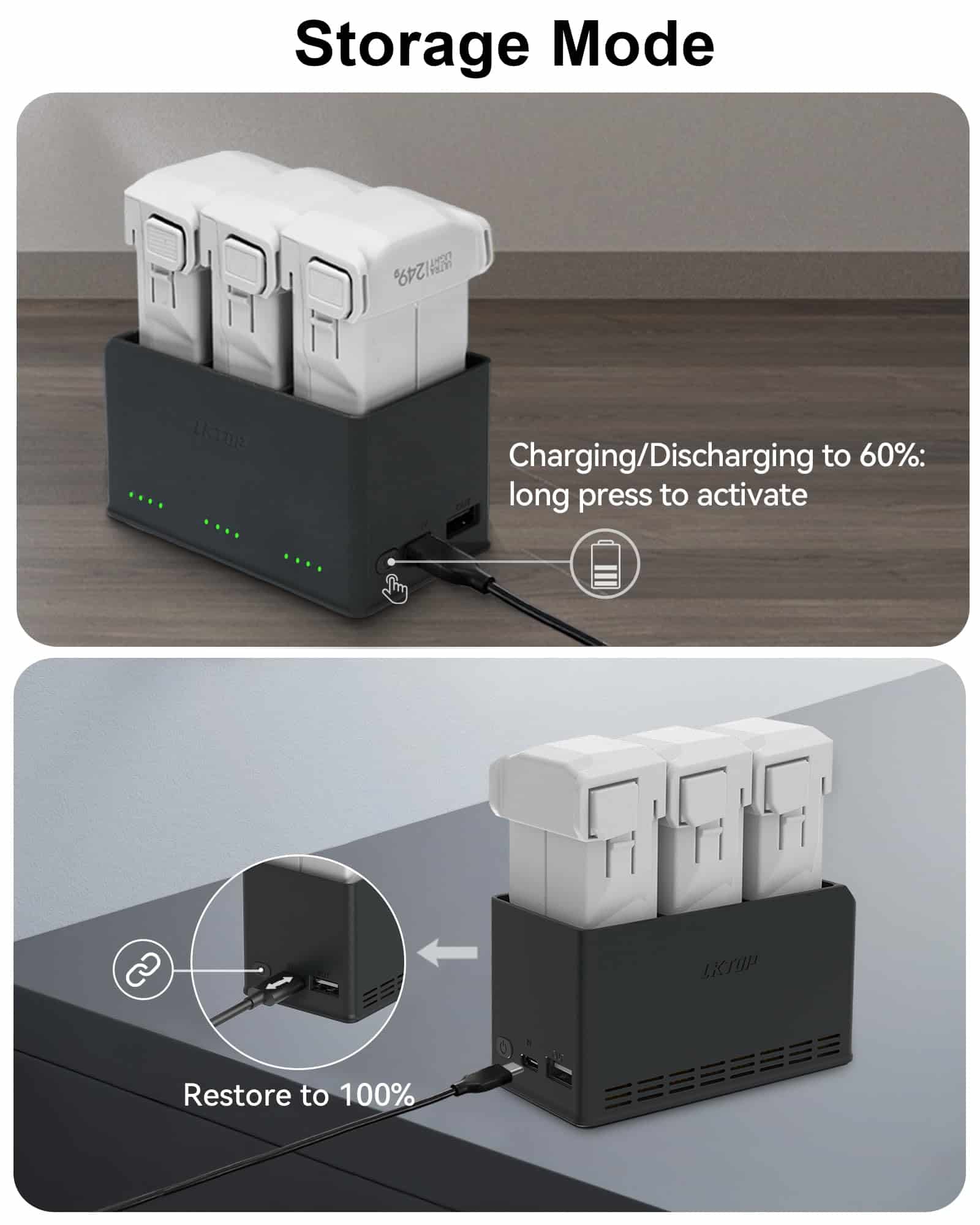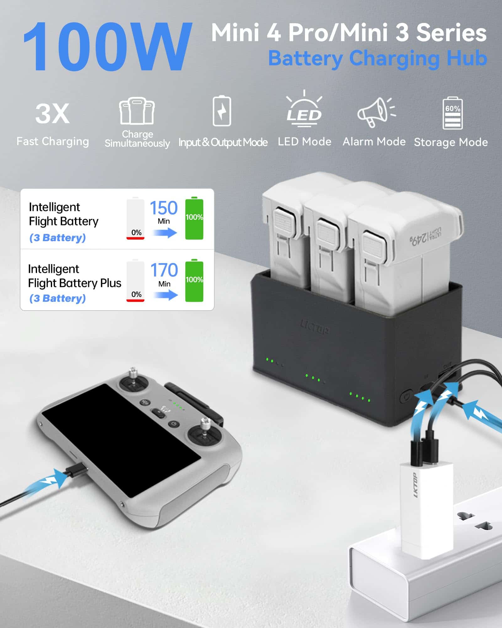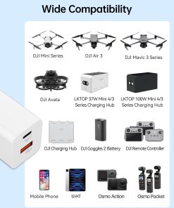 Descripción: El Hub de Carga de Batería Mini 4 Pro/Mini 3 Series de 100W con Cargador de Batería de 65W tiene 4 funciones potentes: carga, iluminación, alarma y almacenamiento. Es compacto y conveniente de llevar, perfecto para deportes al aire libre y viajes. Compatible con DJI Mini 4 Pro, DJI Mini 3 Pro, DJI Mini 3. Incluye: Hub de Carga de Batería Mini 4 Pro/Mini 3 Series de 100W 1, Cargador Portátil de 65W 1, Cable A-C 1, Cable C-C 1