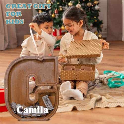 3. REGALO PERSONALIZADO ÚNICO: Más allá de elegir una hucha con la letra correspondiente para la familia o amigos, puedes personalizarla aún más grabando mensajes únicos o nombres en la hucha de madera personalizada. El panel acrílico se puede adornar con dibujos exclusivos utilizando marcadores a base de agua. Un regalo perfecto para niños, recién nacidos, niños y niñas de cualquier edad, para Baby Shower, Día del Niño, Regreso a Clases, Acción de Gracias, Navidad, Cumpleaños, etc.