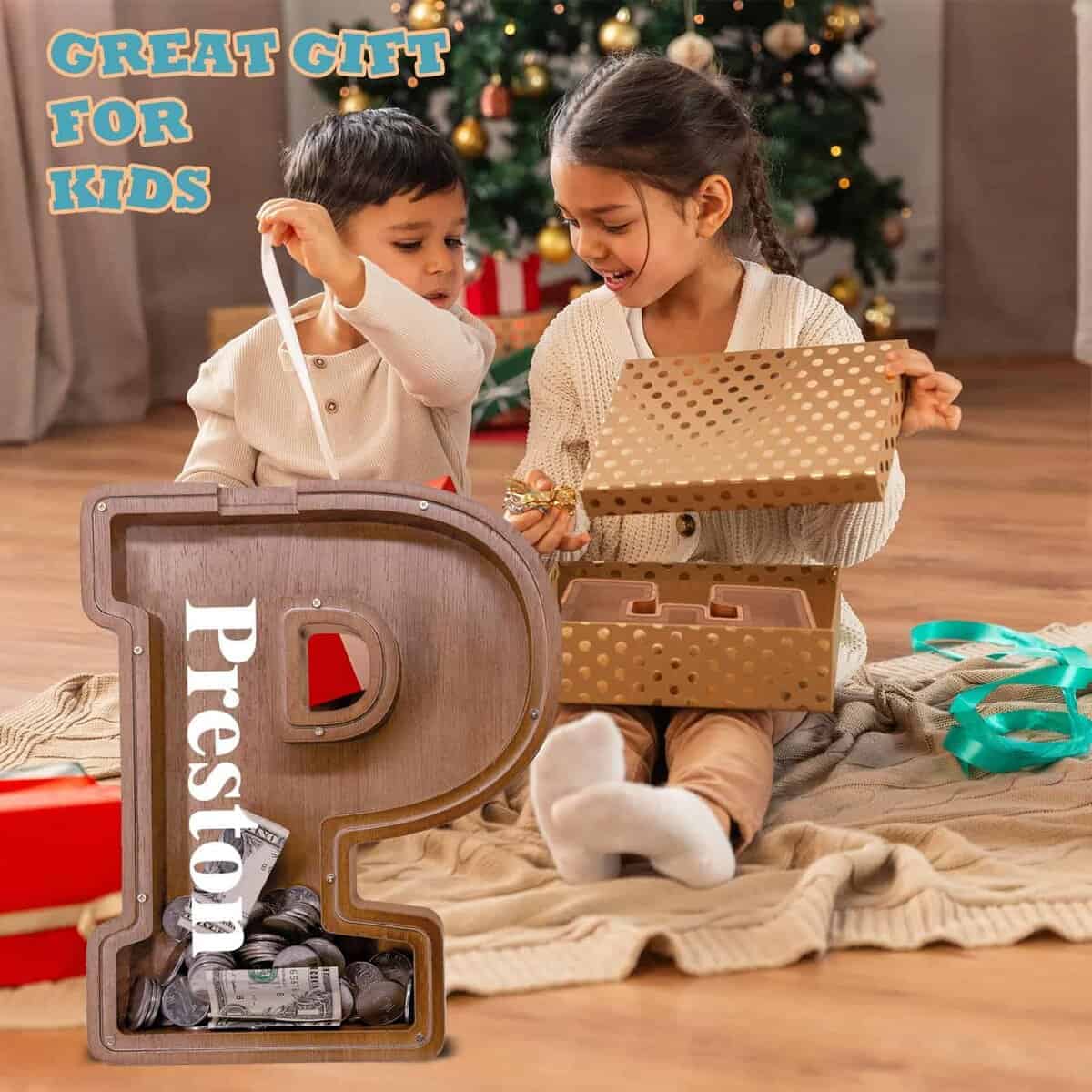 3. REGALO PERSONALIZADO ÚNICO: Más allá de elegir una hucha inicial con la inicial correspondiente para familiares o amigos, puedes personalizarla aún más grabando mensajes o nombres únicos en la hucha de madera personalizada. El panel acrílico se pueden adornar con dibujos exclusivos utilizando marcadores a base de agua. Un regalo perfecto para niños, recién nacidos, niños y niñas de cualquier edad, para Baby Shower, Día del Niño, Regreso a Clases, Día de Acción de Gracias, Navidad, Cumpleaños, etc.