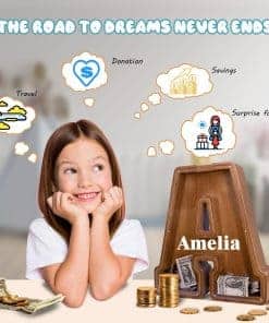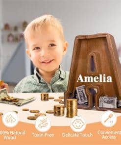 4. CAJA DE ALMACENAMIENTO Y DECORACIÓN VERSÁTIL Y GRANDE: La hucha de monedas inicial se eleva a una altura de 12 pulgadas y presume un grosor de 1 pulgada para una mayor capacidad, lo que le permite mantenerse estable en cualquier superficie. Su estructura resistente, hecha de materiales duraderos y combinada con una artesanía exquisita, hace que sea adecuada no solo como hucha de letra de madera, sino también como decoración, caja de tarjetas de boda, caja de charcutería o caja de bocadillos.