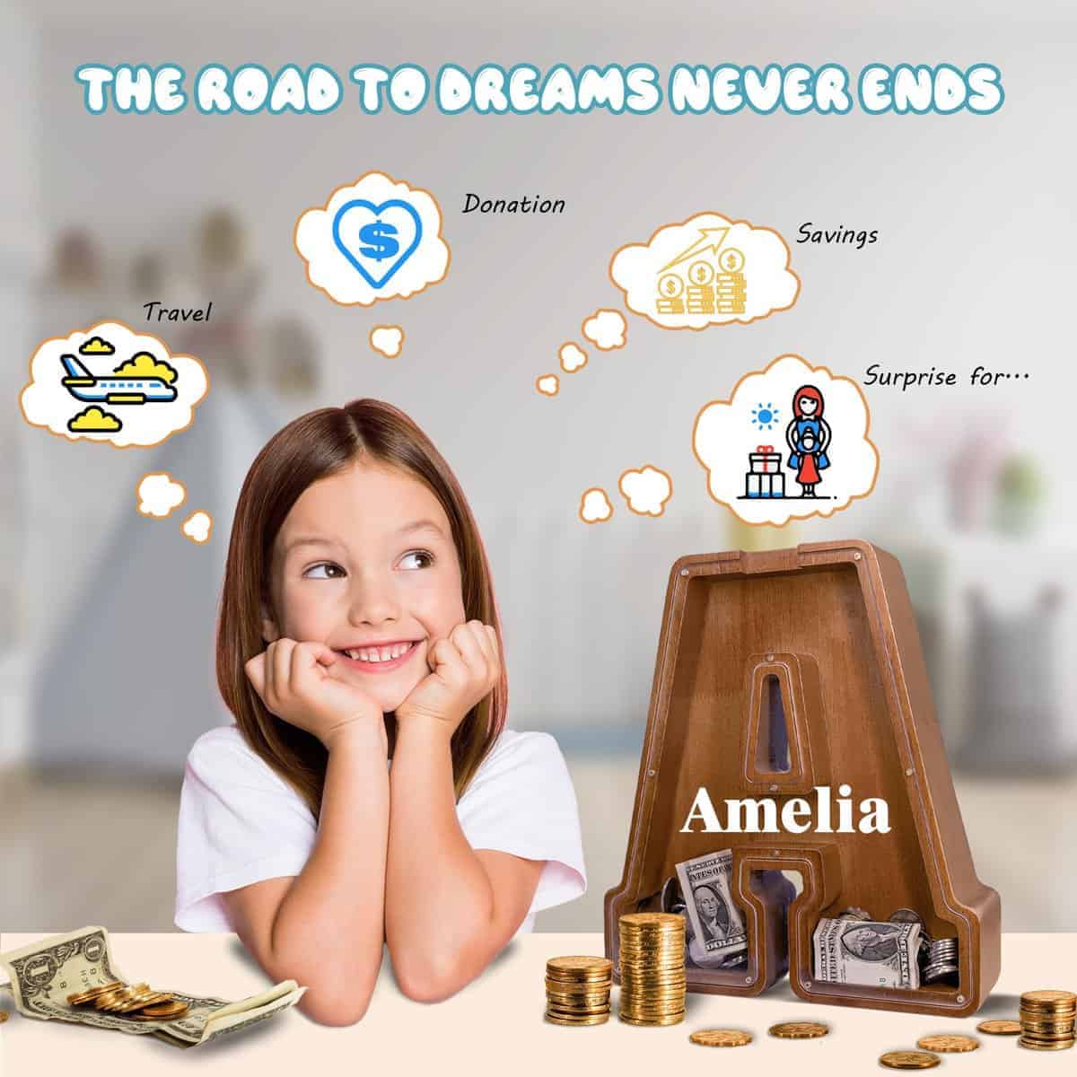 2. COMPANERO FINANCIERO DE LOS NIÑOS: A través del panel acrílico transparente de la hucha de letra del alfabeto, los niños pueden controlar fácilmente el crecimiento del ahorro, haciendo progresos tangibles hacia sus metas. Desenrosque para acceder sin problemas al ahorro, esta hucha de monedas de alfabeto es un juguete educativo reutilizable de primera calidad para fomentar la alfabetización financiera en los niños y promover una cultura de ahorro desde una edad temprana.