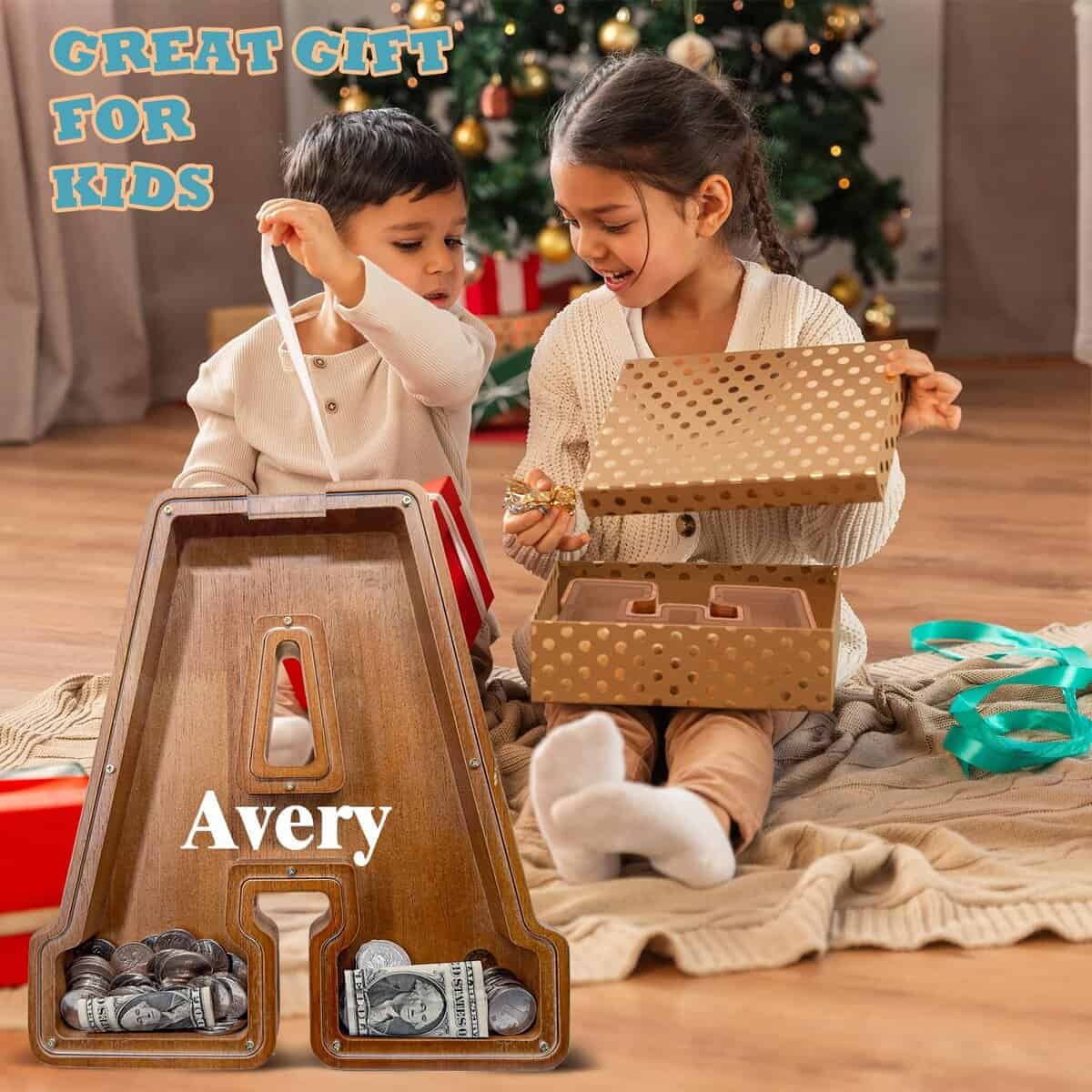 3. REGALO PERSONALIZADO EXCLUSIVO: Más allá de elegir una hucha inicial con la inicial correspondiente para familiares o amigos, puedes personalizarla aún más grabando mensajes únicos o nombre en la hucha de madera personalizada. El panel acrílico puede ser adornado con dibujos exclusivos utilizando marcadores a base de agua. Un regalo perfecto para niños, recién nacidos, niños y niñas de cualquier edad, para Baby Shower, Día del Niño, Regreso a Clases, Acción de Gracias, Navidad, Cumpleaños, etc.