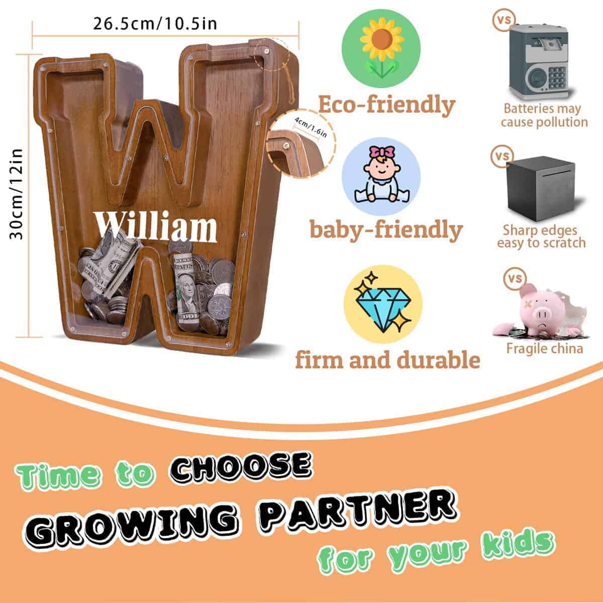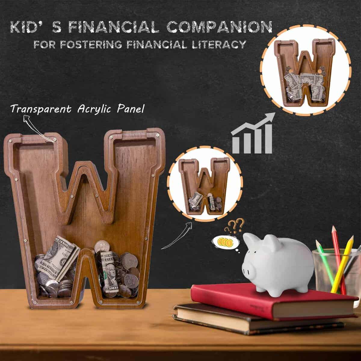 2. COMPAÑERO FINANCIERO DE LOS NIÑOS: A través del panel acrílico transparente de la hucha de letra, los niños pueden monitorear fácilmente el crecimiento de los ahorros, haciendo un progreso tangible hacia sus objetivos. Desenrosque para acceder sin problemas a los ahorros, esta hucha de letras es un juguete educativo reutilizable de primera calidad para fomentar la alfabetización financiera en los niños y promover una cultura de ahorro desde temprana edad.