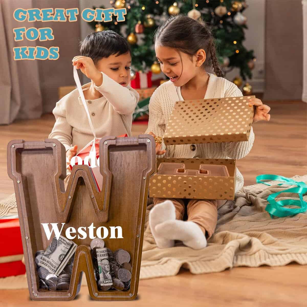 3. REGALO PERSONALIZADO ÚNICO: Al elegir una hucha de iniciales con la inicial correspondiente para la familia o amigos, puede personalizarla aún más grabando mensajes únicos o nombre en la hucha de madera personalizada. El panel acrílico se puede adornar con dibujos exclusivos utilizando marcadores a base de agua. Un regalo perfecto para niños, recién nacidos, niños y niñas de cualquier edad, para Baby Shower, Día del Niño, Regreso a Clases, Acción de Gracias, Navidad, Cumpleaños, etc.