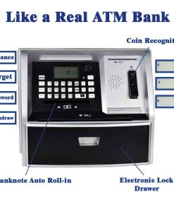 1. Hucha Mini ATM para Dinero Real – La Herramienta de Aprendizaje Perfecta para Niños Utiliza tarjetas bancarias para depósitos y retiros fáciles, con actualizaciones automáticas de saldo. Enseña a los niños el valor del ahorro de dinero mientras se divierten con esta hucha interactiva. El reconocimiento de monedas y la inserción automática de billetes hacen que el ahorro sea sencillo.