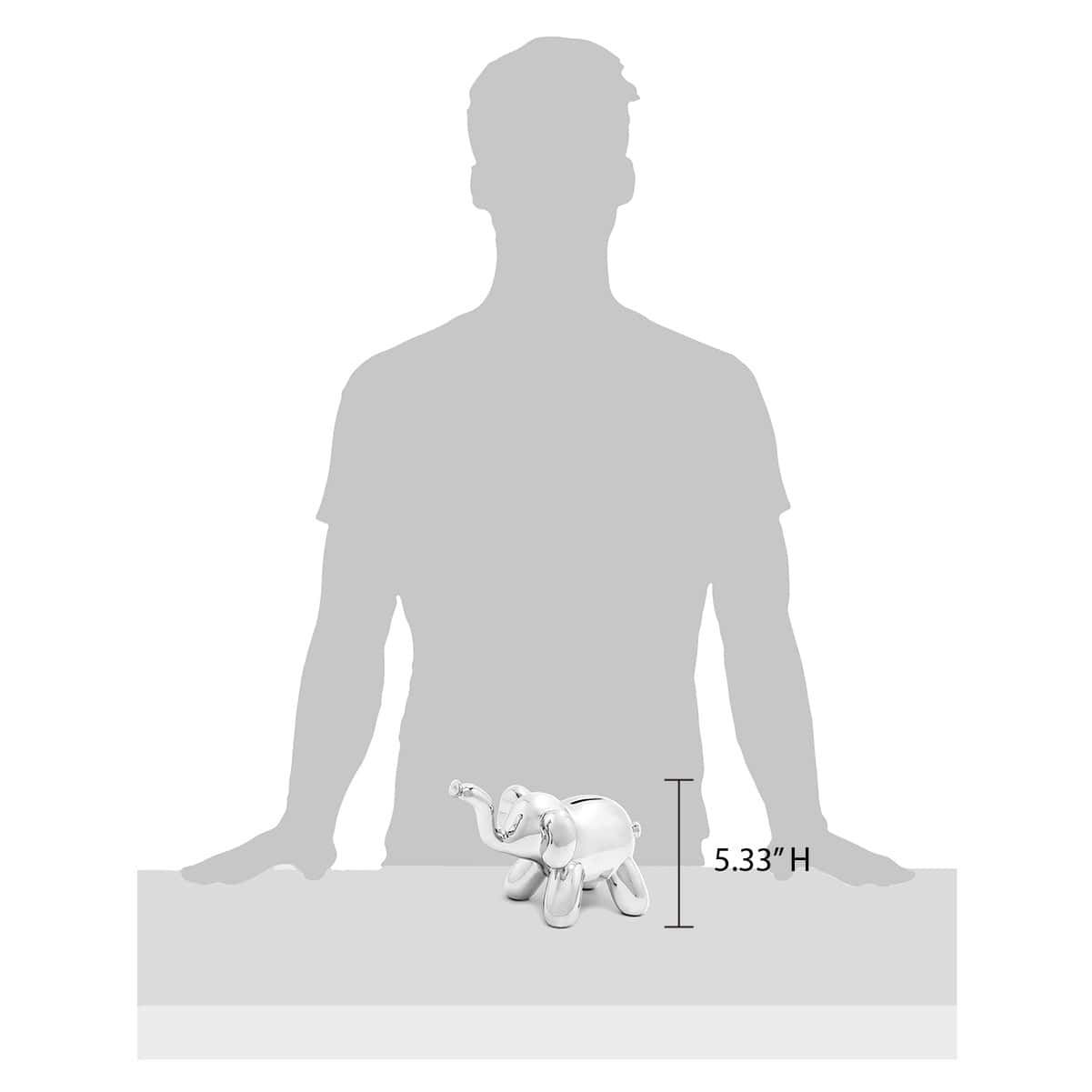 La Hucha Globo de Elefante Bebé está hecha a mano con materiales no tóxicos y obtiene su superficie brillante y metálica a través de un proceso altamente complejo llamado electrochapado. Práctica, linda y bellamente esculpida, es la forma perfecta de hacer una declaración audaz con tu decoración de hogar u oficina y darle un ambiente caprichoso y encantador.