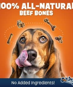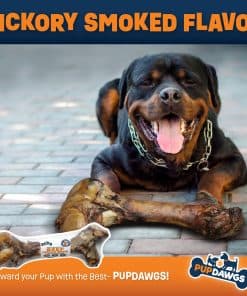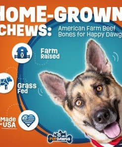 Consiente a tu perro con la mejor calidad de huesos para masticadores agresivos con los Huesos para Perros PUPDAWGS. Nuestros huesos de fémur de res con sabor a Hickory ahumado de 12-14″ son ideales para perros grandes y agresivos masticadores. Estos huesos naturales para perros promueven la salud dental y de las encías, proporcionan nutrientes esenciales como calcio y fósforo, y mantienen a tu perro entretenido y feliz. Hechos exclusivamente en EE. UU. y apoyando a los rancheros americanos, nuestros masticables para perros están elaborados con ingredientes locales y procesados mínimamente, asegurando un premio seguro y saludable para tu mascota. Al proporcionar huesos reales para que los perros masticen, se reduce la probabilidad de que muerdan objetos inapropiados como muebles o zapatos, lo que ahorra tiempo y dinero. Asegúrate de darle a tu perro un hueso grande (más de 40 libras) para que disfrute de este premio de larga duración que le brindará días de entretenimiento y satisfacción.