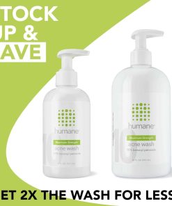 El Acne Body Wash de máxima fuerza de Humane está formulado con 10% de peróxido de benzoilo, es un potente tratamiento de limpieza facial y corporal que se enfoca en la causa principal del crecimiento del acné y combate la producción excesiva de aceite. No lo use si tiene la piel sensible. La botella de 16 FL. OZ. es ideal para su uso diario.