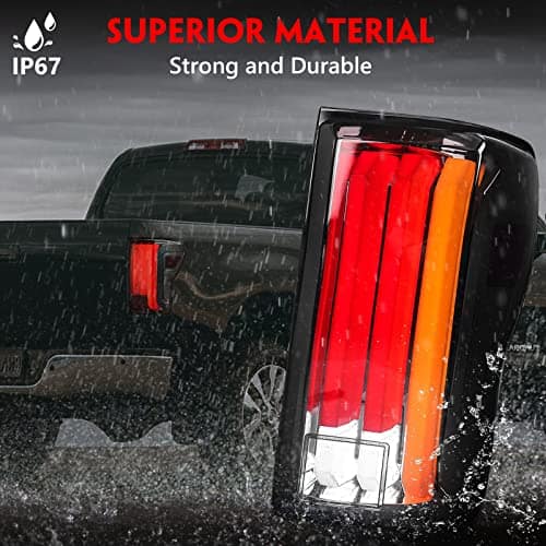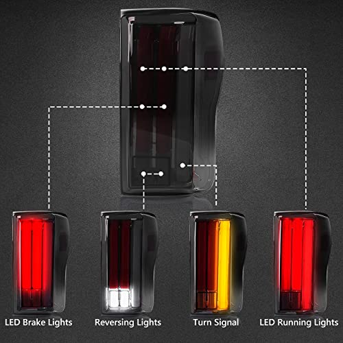 Huray Full LED Tail lights para Toyota Tundra 2007-2013 Lámpara de señal de giro de freno trasero del piloto trasero (Lente Ahumada en Carcasa Negra) ADAPTACIÓN Luces traseras LED completas para Toyota Tundra 2007-2013. El reemplazo perfecto para las luces traseras de fábrica. Ajuste exacto, nuevo aspecto. REFACCIÓN DIRECTA OE: 815500C070, 815600C070, 815500C090, 815600C090. Número de pieza de referencia: TO2801165, TO2800165, TO2801183, TO2800183. La lente proporciona una iluminación adecuada. Asegura una seguridad confiable. MULTIFUNCIONALIDAD Full LED, mayor tiempo de uso y más ahorro de energía. Las señales de giro se comparten con las luces de freno. Incluye luces diurnas LED rojas, señales de giro intermitentes LED ámbar, luces de freno LED rojas y luces de marcha atrás LED blancas, cumple con el diseño integrado. MATERIAL SUPERIOR Hecho de plástico ABS de grado automotriz, alta resistencia y resistente a impactos. Asegura un rendimiento óptimo en todas las condiciones climáticas. Cuando bloqueas o desbloqueas el vehículo, aparecerá la animación de inicio de la respiración. Los efectos de iluminación elegantes y frescos te brindan una experiencia de conducción diferente. COMPRA CON CONFIANZA Ofrecemos garantía de 365 días. (1) Si no es compatible con tu Toyota Tundra, devuélvelo; (2) Si causa código de error, parpadeo, humedad dentro de la luz, contacta con nosotros para solución; (3) Si está defectuoso o los LED se apagan, obtén un reemplazo nuevo; (4) ¡Cualquier problema con nuestras luces, simplemente contáctanos!
