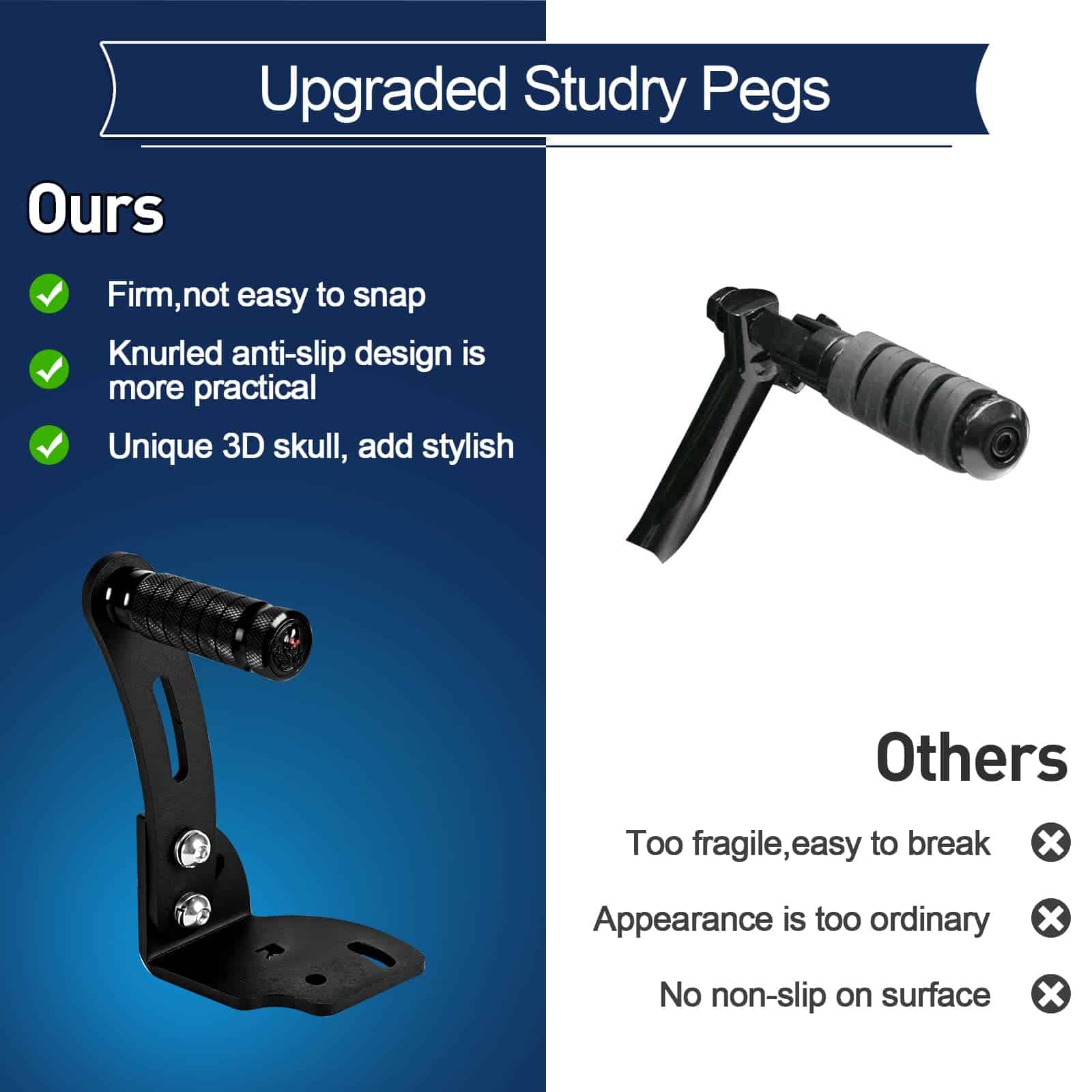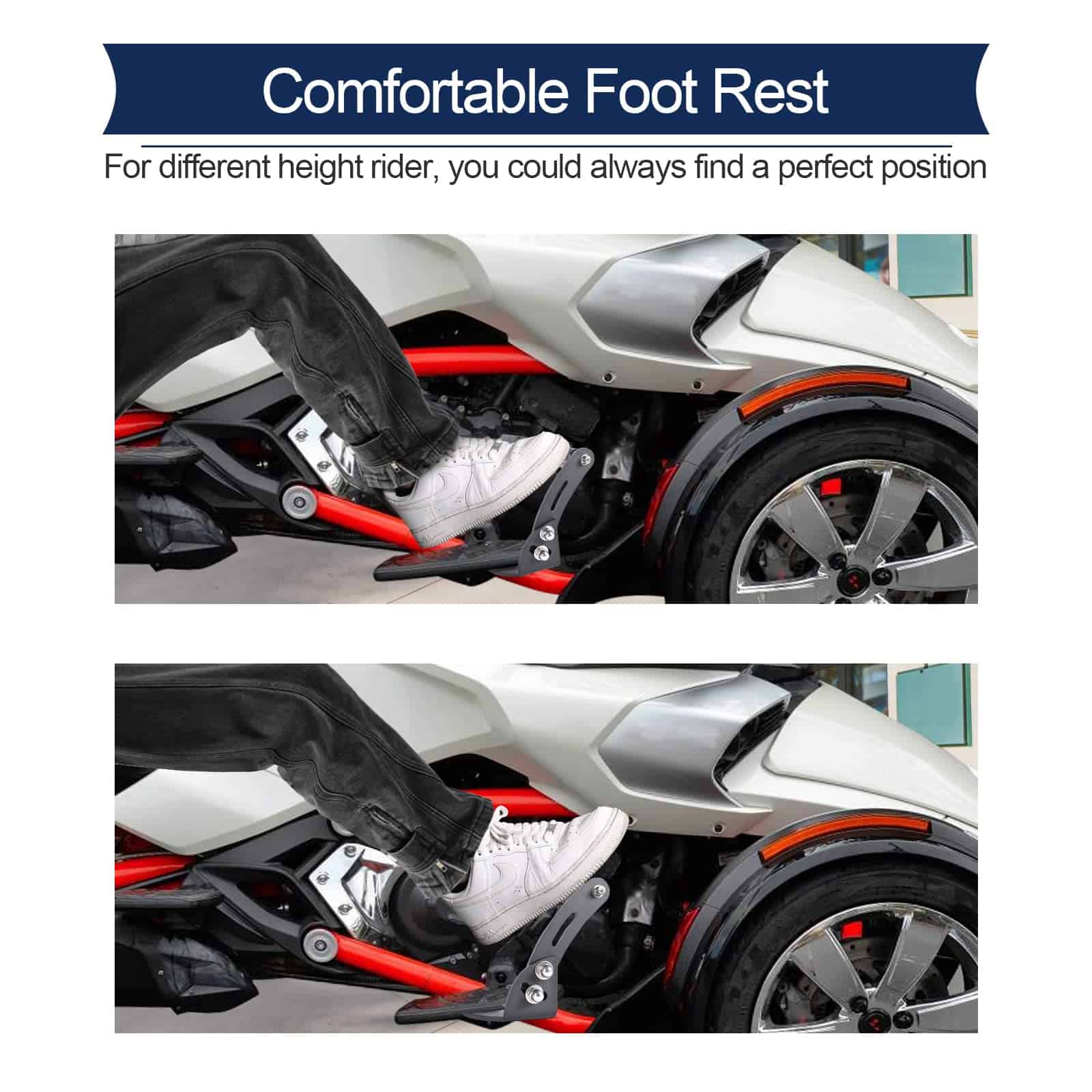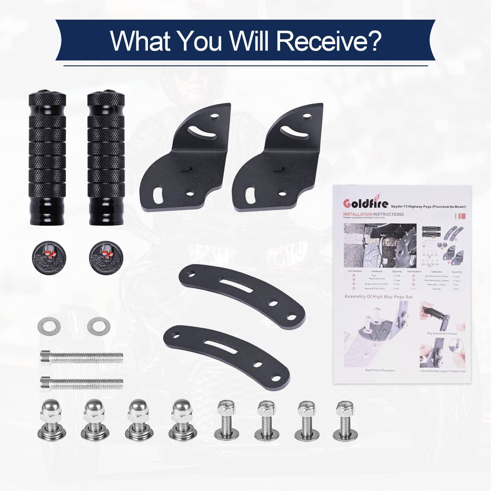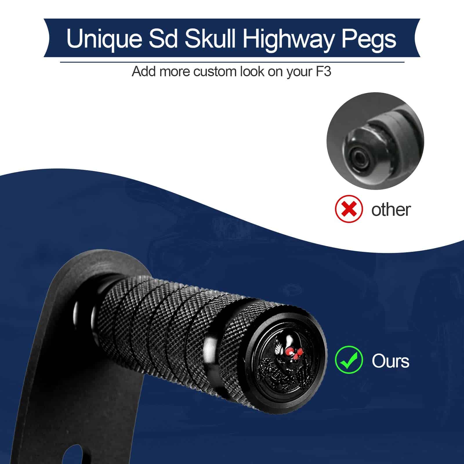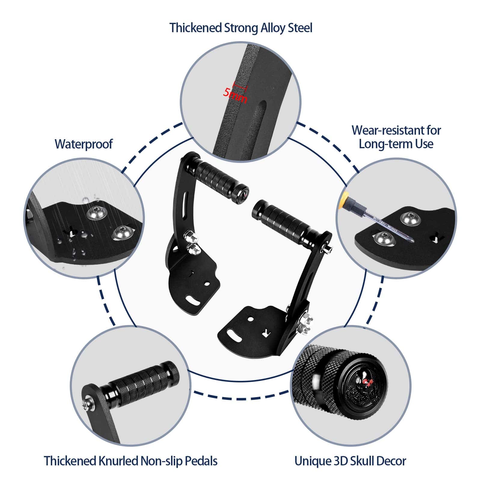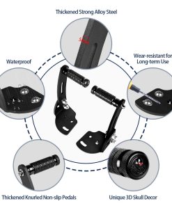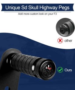 El par de reposapiés se ajusta a los modelos Can Am Spyder F3 Floorboard 2015-2023 (Fábrica de Flooboards). Fabricados en acero aleado sólido y duradero para garantizar durabilidad y resistencia al calor. Recubrimiento en polvo brillante en los casos de reposapiés para una durabilidad, resistencia a la corrosión y resistencia a la luz UV superiores. Se pueden ajustar fácilmente hacia adelante y hacia atrás 30 grados, con ajustes de ángulo izquierdo y derecho, permitiéndole ajustar los reposapiés a su nivel de confort. Diseño de estriado profundo para mejorar el agarre. Fácil instalación con instrucciones incluidas. * Por favor asegúrese de apretar todos los tornillos después de la instalación. El diseño de calavera 3D en los reposapiés aporta un aspecto único y atractivo.