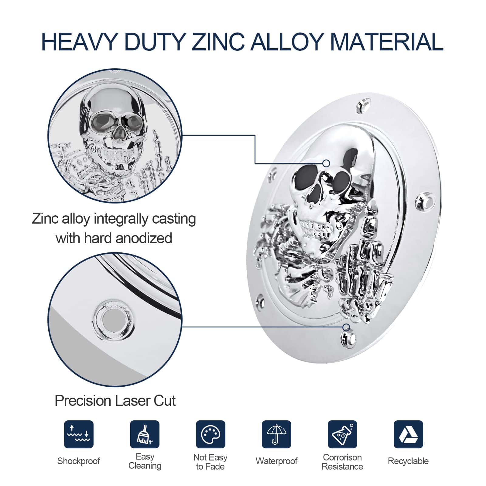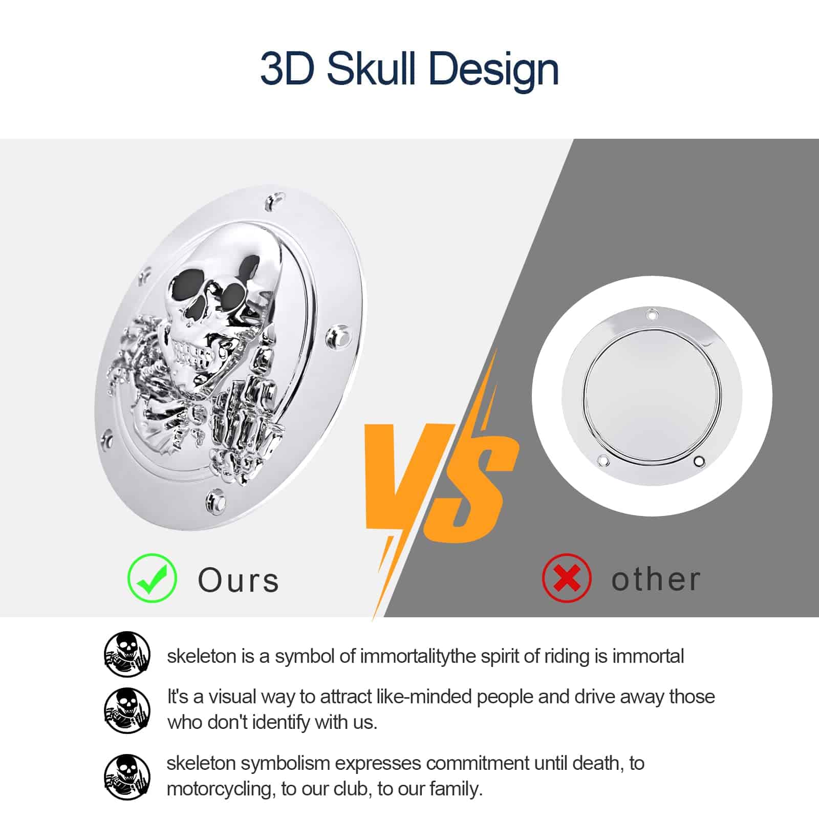 La Cubierta del Temporizador Derby y Cubierta de Tiempo del Engine Clutch tiene un diseño único de patrón de calavera 3D, que proporcionará una mejor tridimensionalidad y dureza en la superficie. La instalación de la Cubierta Derby se puede completar en 5 minutos o menos utilizando tus pernos de fábrica, fácil instalación diseñada. La cubierta derby se utiliza para cubrir el embrague de tu motocicleta y protegerlo de polvo, suciedad y otros contaminantes dañinos. Los materiales duraderos no se ven afectados por la intemperie, no temer a la lluvia o a los caminos embarrados, fácil de limpiar y restaurar como nuevo. Al colocar nuestra cubierta del temporizador Derby protege tus piernas del calor del motor y protege tu motor del lodo o la lluvia. El diseño del patrón de calavera 3D brinda una experiencia visual más realista que otros en el mercado, atrayendo a personas con ideas afines y alejando a los que no se identifican con nosotros. El simbolismo de la calavera expresa nuestro compromiso hasta la muerte, con el motociclismo, nuestro club y nuestra familia.