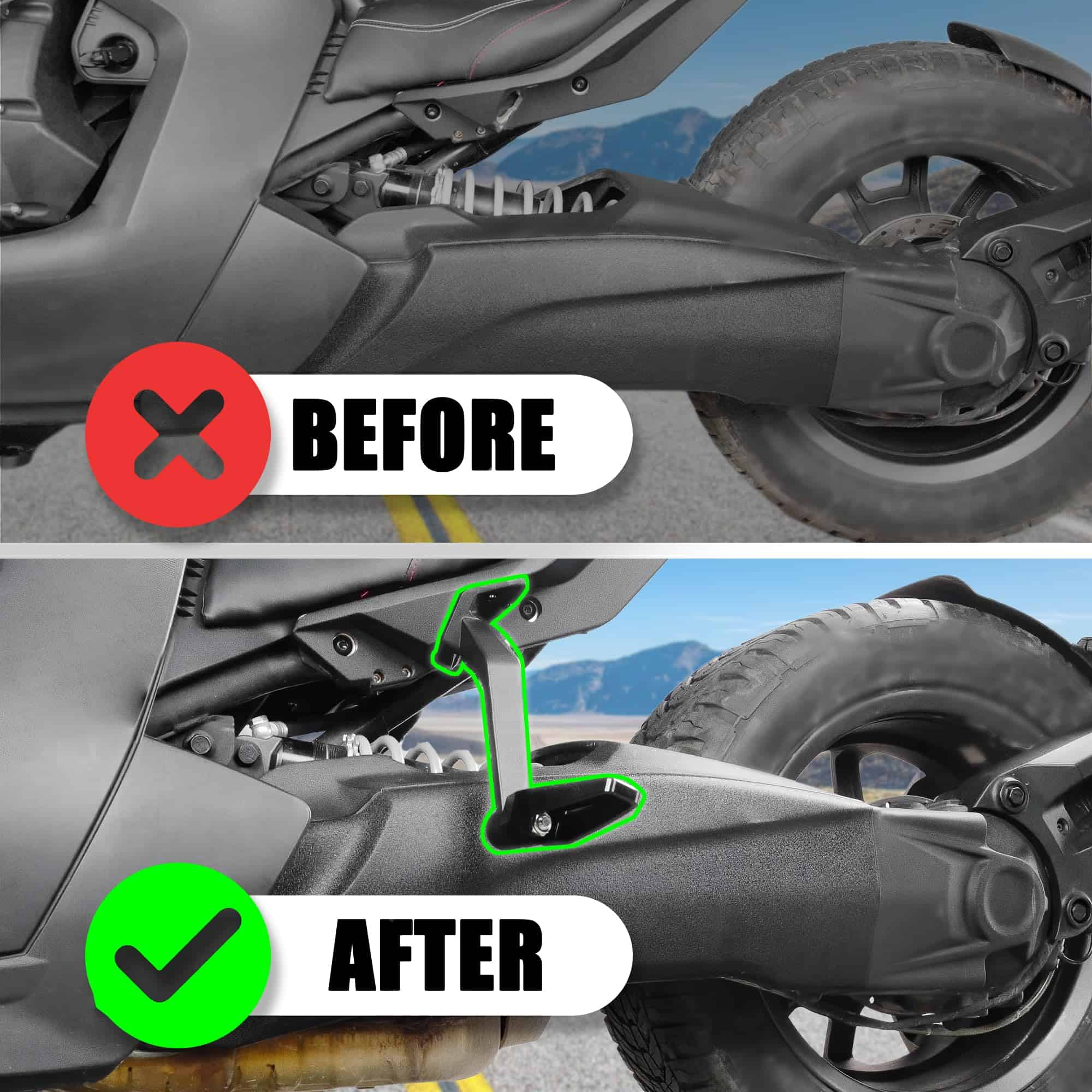 1. Diseñado para Pasajeros en Can-Am Ryker Nuestros Pies de Pasajero han sido meticulosamente diseñados para Can-Am Ryker 600/900, modelos rally y sport que abarcan desde 2019 hasta 2024. Están diseñados para garantizar que sus pasajeros disfruten de un viaje cómodo y agradable. Estos pies de pasajero encajan a la perfección y son completamente compatibles con el Montaje MÁX 219400800, facilitando la integración sin problemas y proporcionando una estabilidad mejorada. 2. Construcción Duradera: Hechos de aluminio resistente con recortes esculpidos con CNC, estos tableros no solo lucen geniales sino que también ofrecen un agarre seguro. Están construidos para durar y añadir un toque de estilo a su Ryker. Es una combinación de funcionalidad y estética que hace que cada viaje se destaque. 3. Posicionamiento Ajustable: Estos reposapiés traseros para pasajeros cuentan con ángulos o alturas ajustables para adaptarse a diferentes estilos de conducción y preferencias del usuario. Ajustables para su zona de confort personal, personalícelos para su estilo de conducción y preferencias únicas. Sienta la diferencia mientras disfruta de un paseo suave, ya sea un breve paseo por la ciudad o una épica expedición por carretera. Se trata de encontrar ese ajuste perfecto que haga que cada viaje con sus pasajeros sea un placer y le permita explorar este maravilloso mundo juntos. 4. Textura Antideslizante: La superficie del reposapiés está diseñada intencionalmente con patrones acanalados para garantizar una tracción excepcional y un agarre firme. Esta textura antideslizante especialmente diseñada mejora significativamente su seguridad y estabilidad mientras conduce. Previene eficazmente que sus pies resbalen, proporcionándole una experiencia de conducción segura y confiable. 5. Instalación Fácil: La instalación de estos reposapiés es muy fácil, no es necesario perforar adicionalmente u operaciones complicadas. En un abrir y cerrar de ojos, los tendrá firmemente en su lugar, listos para salir a la carretera.