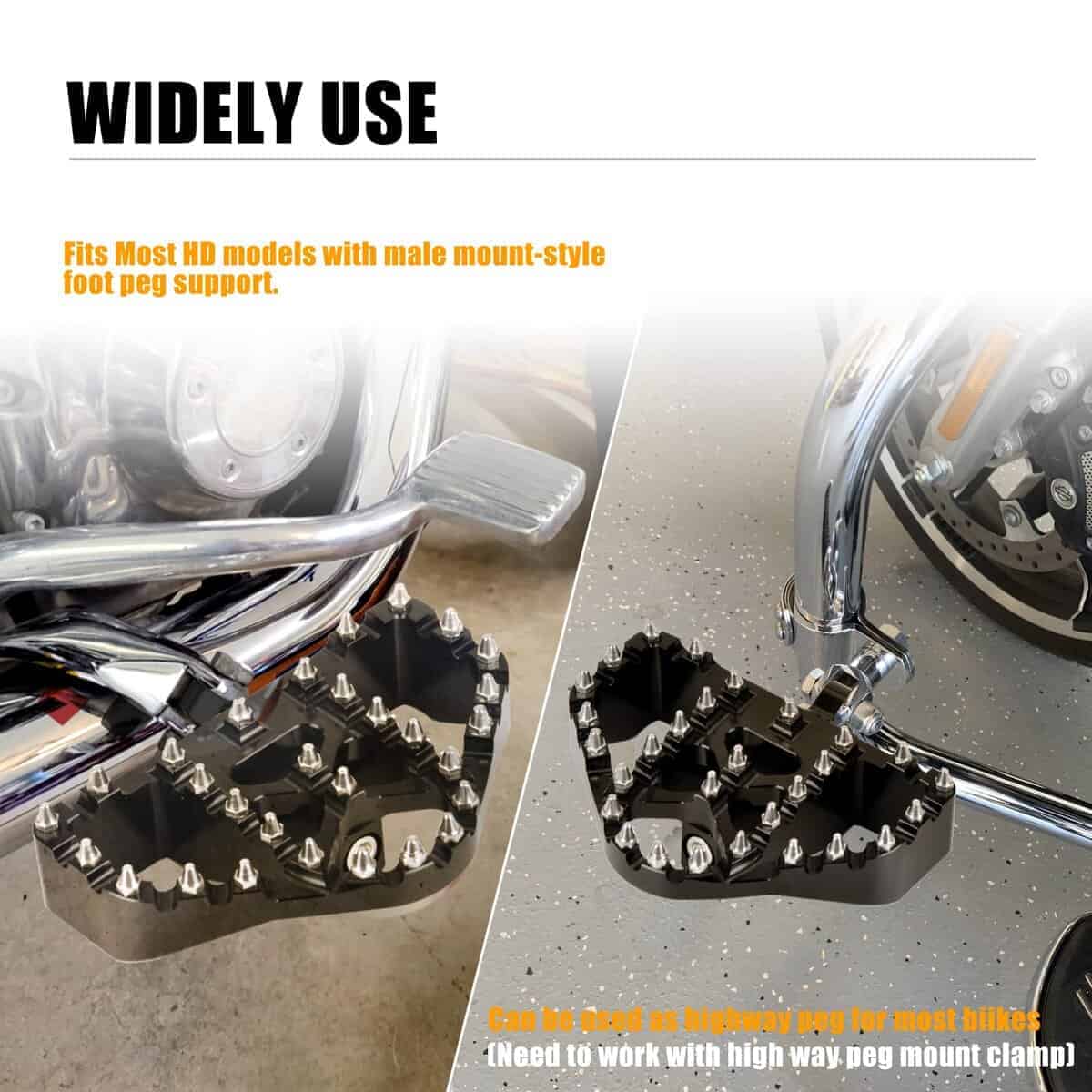 1. AJUSTE: Nuestros Reposapiés de Harley se adaptan a los modelos H-D con soportes de montaje de macho, excepto la posición del conductor en FXCW, FXCWC, FXS, FXSB, FXSBSE de 2008 en adelante, XL883N, XL1200N, XL1200T, XL1200V, XL1200X de 2007 en adelante, XL883L de 07 a 10, XL1200C de 2011 en adelante, XR de 2008 en adelante. Compatible con todos los modelos H-D con soportes de puño para reposapiés de conductor, pasajero o de carretera. NO COMPATIBLE con la posición del conductor en modelos HD con Wear Peg Footpegs (por ejemplo, 48 Sporty, Sporty 72).