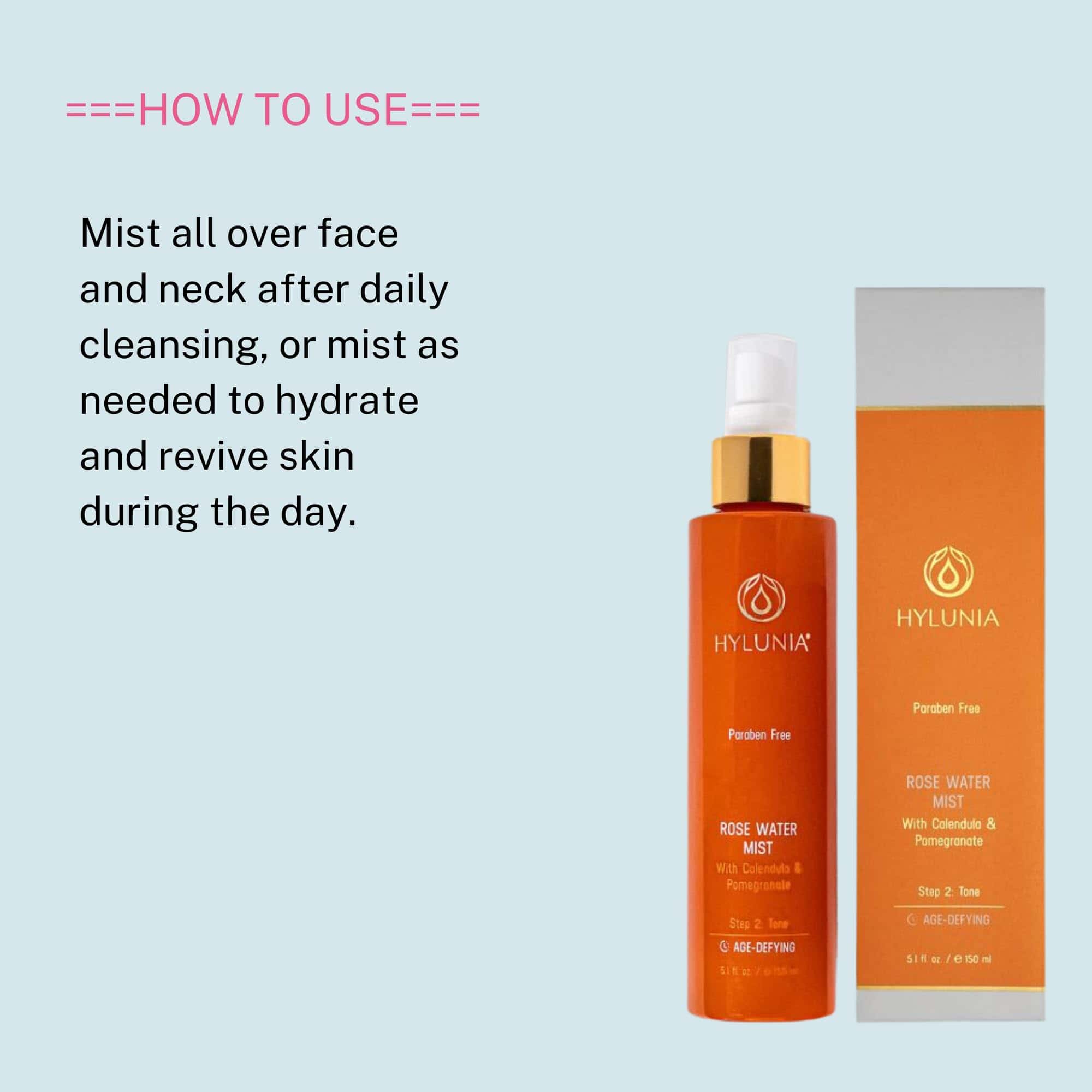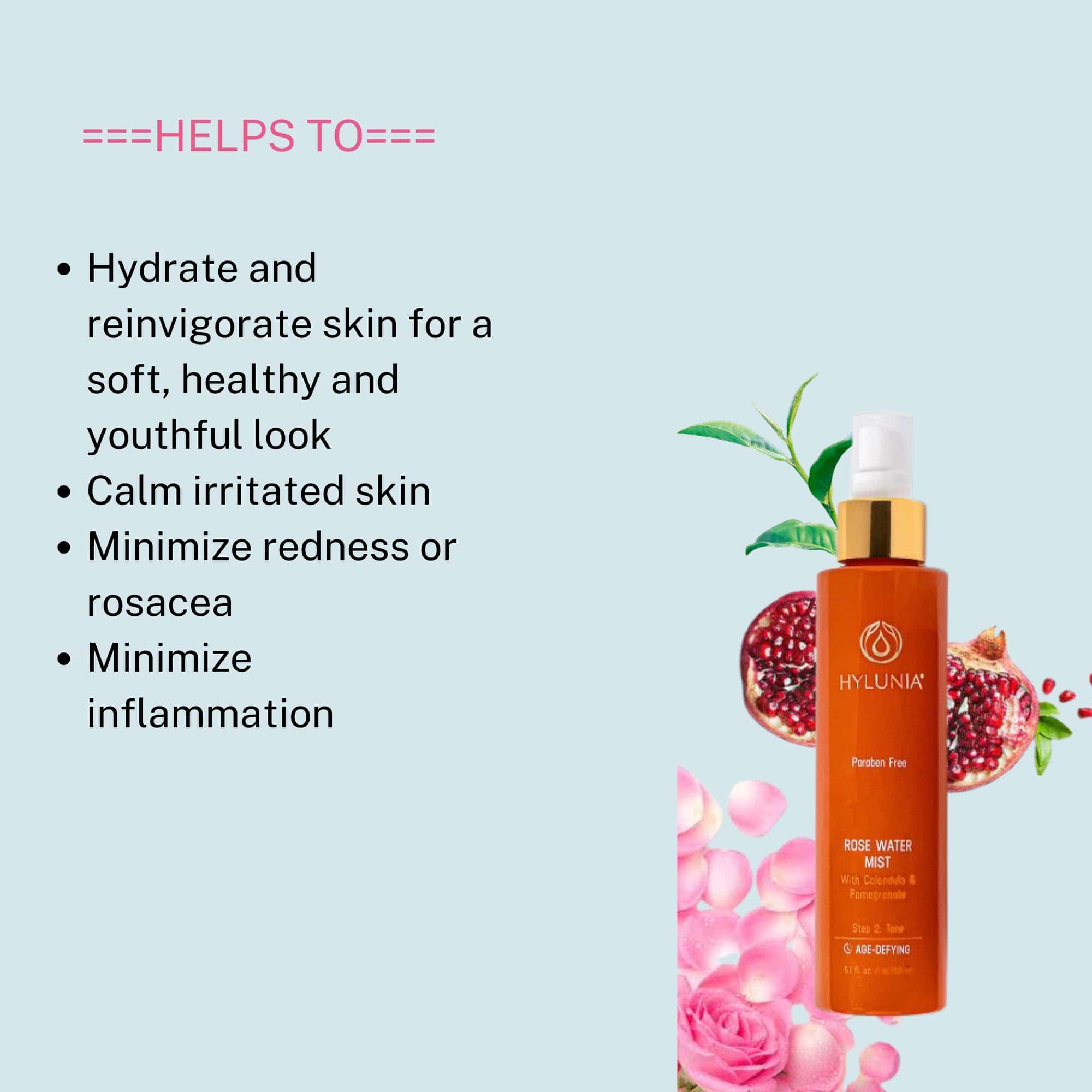 Hylunia Rose Water Mist – 5.1 fl oz – Caléndula y Granada –