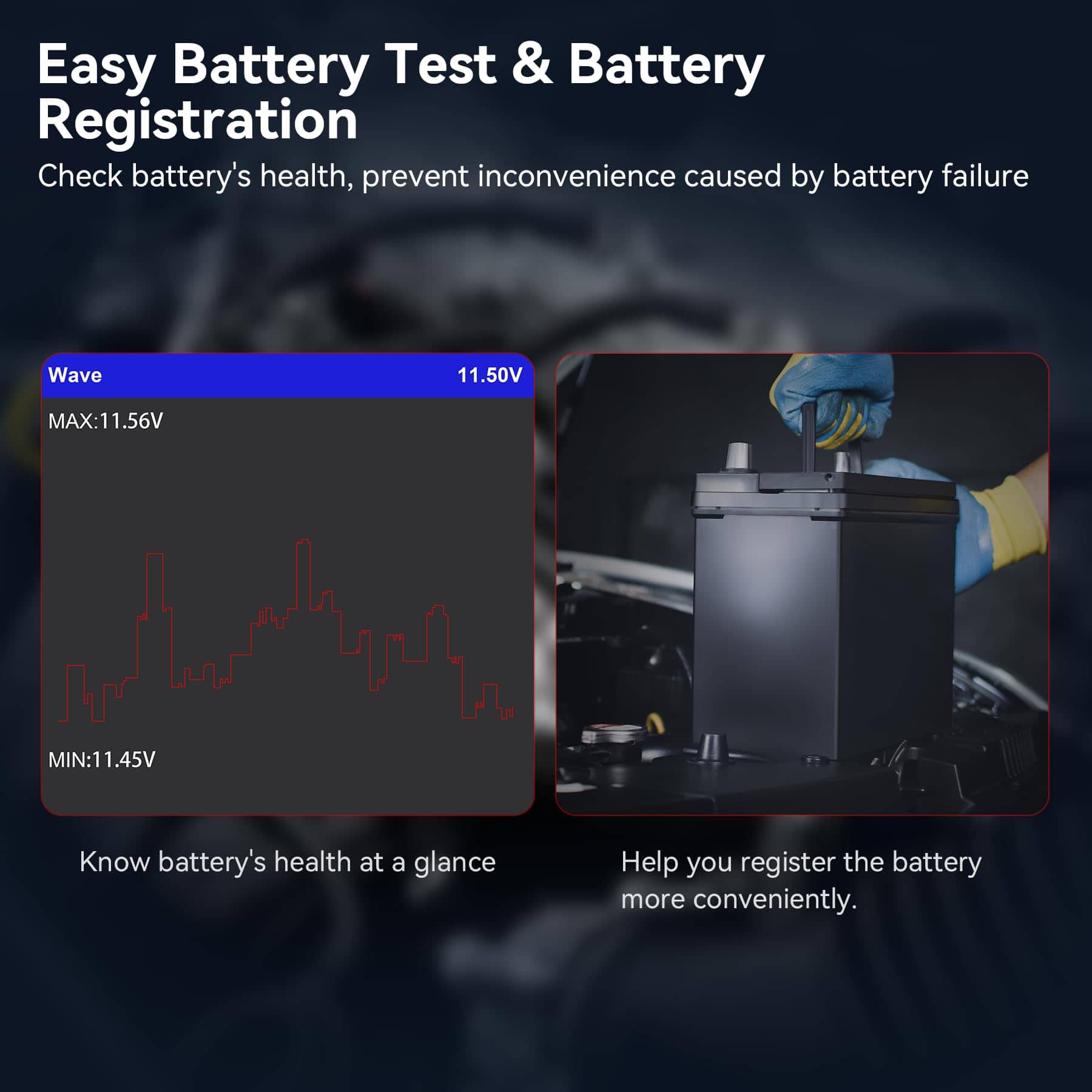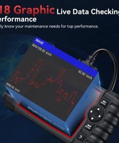 6. 118 Datos en Tiempo Real Gráficos y Prueba de Batería: Viene con 118 datos en tiempo real, este escáner le permite monitorear el rendimiento del automóvil, como la temperatura de transmisión mientras cambia el fluido de transmisión. Este lector de códigos tiene la capacidad de pre diagnosticar problemas potenciales para prevenir reparaciones costosas y averías. Puede saber qué componentes necesitan mantenimiento rutinario. La prueba de batería muestra los datos de voltaje de la batería en forma gráfica, la salud de la batería se conoce de un vistazo.
