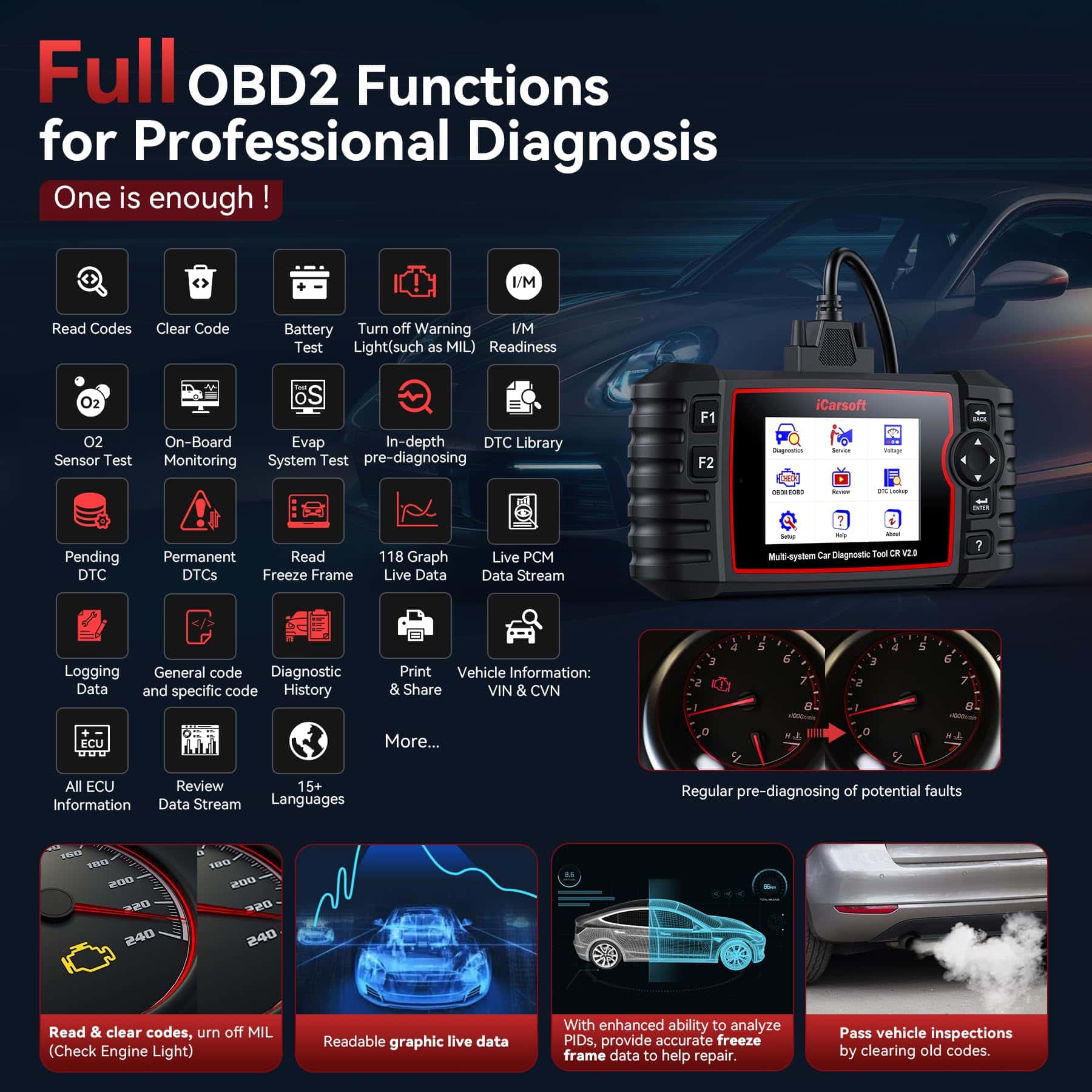 3. Análisis Automático Completo de Sistemas: A diferencia de un escáner de diagnóstico de 4 sistemas (50-140 $), el iCarsoft CR V2.0 ofrece diagnósticos automáticos y completos en todos los sistemas del vehículo (motor, ABS, SRS, transmisión, frenos, TPMS, HVAC, suspensión, y más). Esta herramienta le ayuda a identificar rápidamente problemas simples y complejos, dándole una vista completa de la salud de su automóvil. Con análisis detallados de sistema, puede identificar fácilmente las reparaciones y mantenimientos necesarios, ahorrando tiempo y dinero mientras mejora su proceso de reparación DIY.