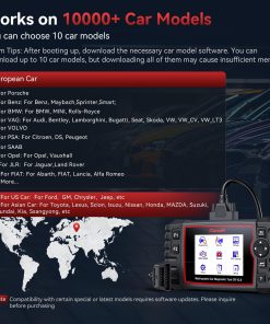 10. Compatible con más de 10000 Marcas: Este poderoso lector de códigos automotrices puede hacer un diagnóstico en profundidad para todos los automóviles, como para Porsche; para Benz: Benz Maybach, Sprinter, Smart; para BMW: BMW, MINI, Rolls-Royce; para VAG: Audi, Bentley, Lamborghini, Bugatti, Seat, Skoda, VW, VW CV, VW LT3; para VOLVO; para PSA: Citroën, DS, Peugeot; para SAAB; para Opel: Opel, Vauxhall; para JLR: Jaguar, Land Rover; para FIAT: Abarth, FIAT, Lancia, Alfa Romeo; y más.