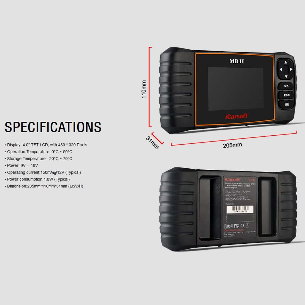 iCarsoft MBII para Mercedes Benz/Sprinter/Smart Escáner