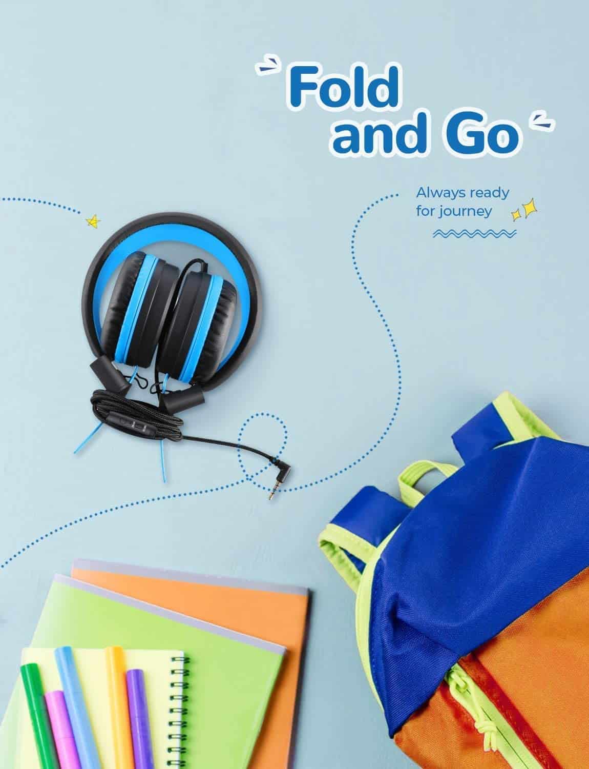 4. Plegables y Duraderos – Estos audífonos para niños son un must-have para mantener entretenidos a tus hijos durante los viajes en auto, viajes en avión. El diseño plegable y ligero (173g) se ajustará fácilmente en una mochila, una maleta o incluso un bolso. ¡El material flexible se puede torcer, jalar e incluso dejar caer sin romperse!