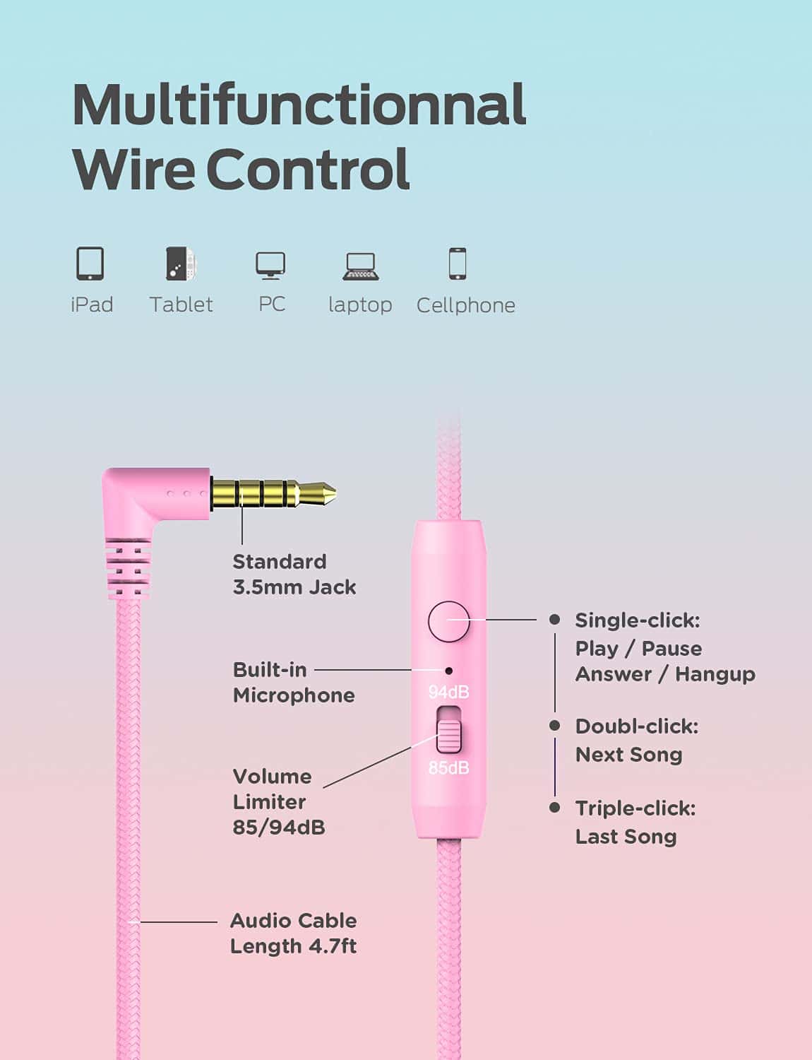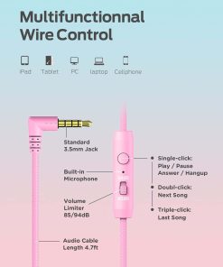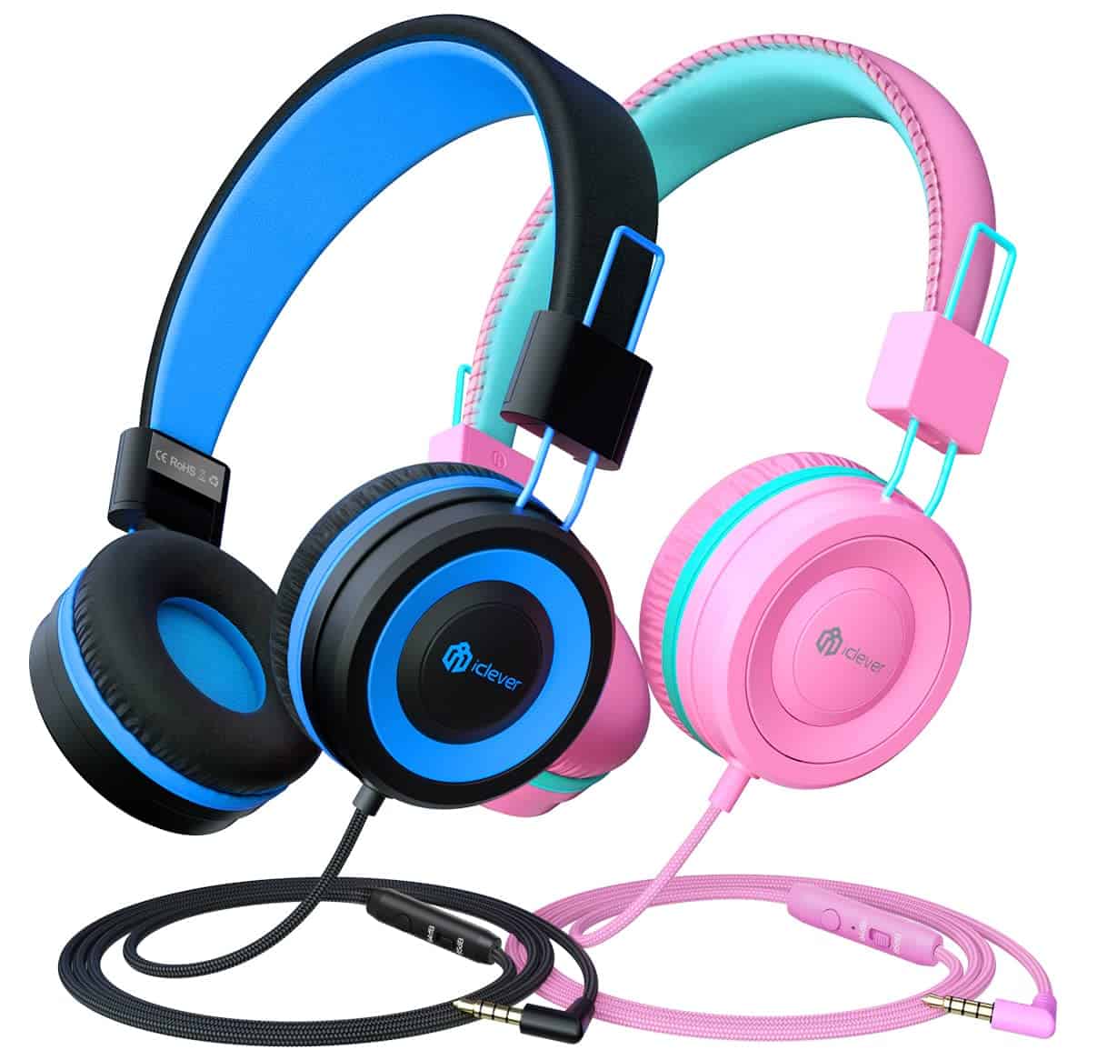 2. Micrófono y Control con Cable – Los audífonos para niños de iClever tienen controles de botones en los cables de Nylon sin enredos de 59 pulgadas. Puedes controlar el volumen, saltar pistas y contestar llamadas. El micrófono integrado permite una comunicación cristalina durante las llamadas.
